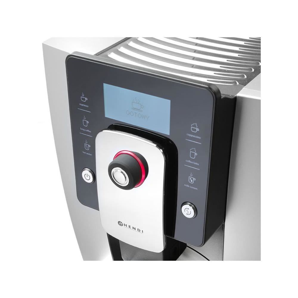 Aparat cafea automat, Hendi Profi Line, 1400 W, rasnita inclusa, negru, bauturi programabile: espresso, cafea lunga, cappuccino, latte, lapte cald, spuma de lapte, apa fierbinte, pompa 19 bari, 302x450x (H) 370 mm