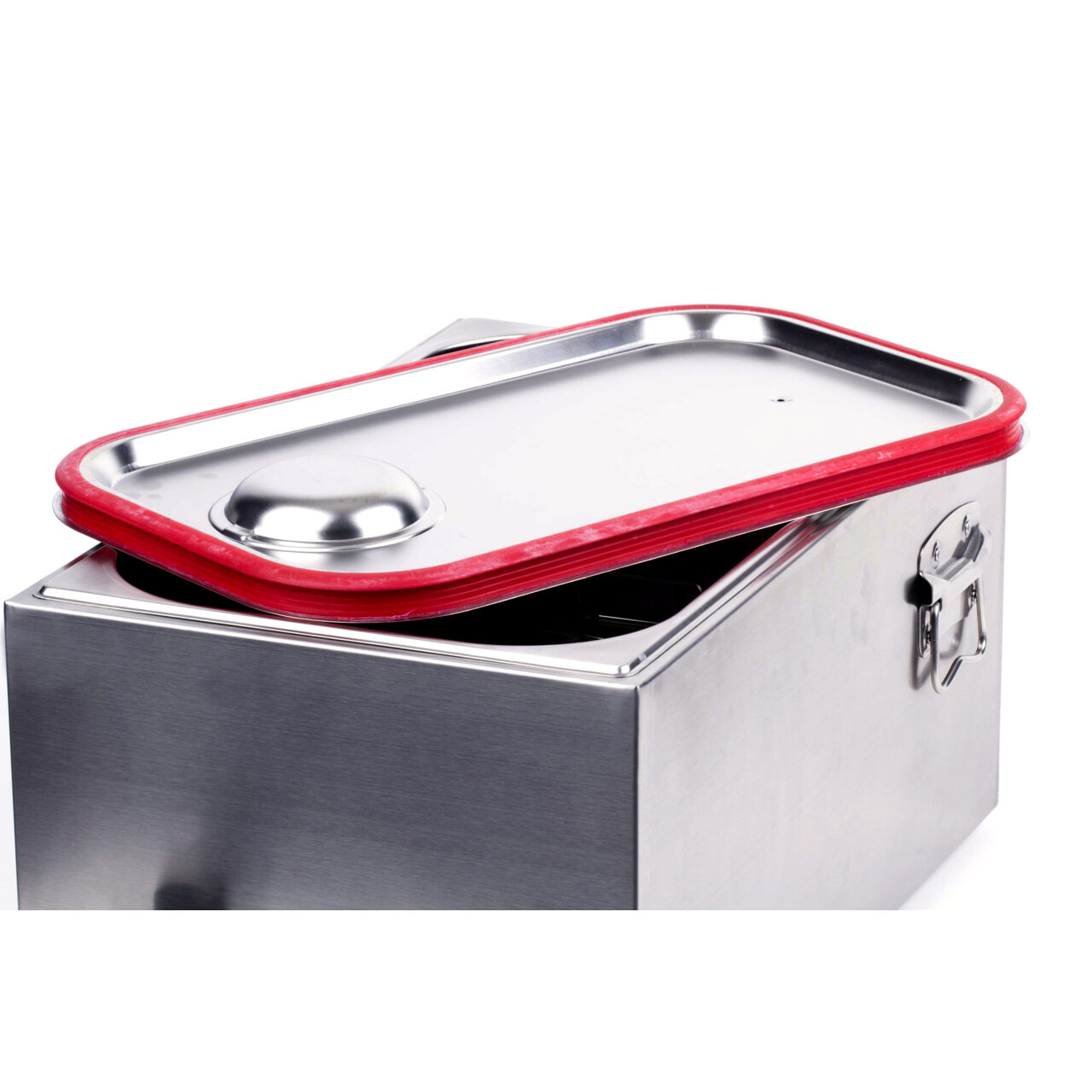 Poate fi sigilat ermetic, capacul este prevazut cu banda din silicon