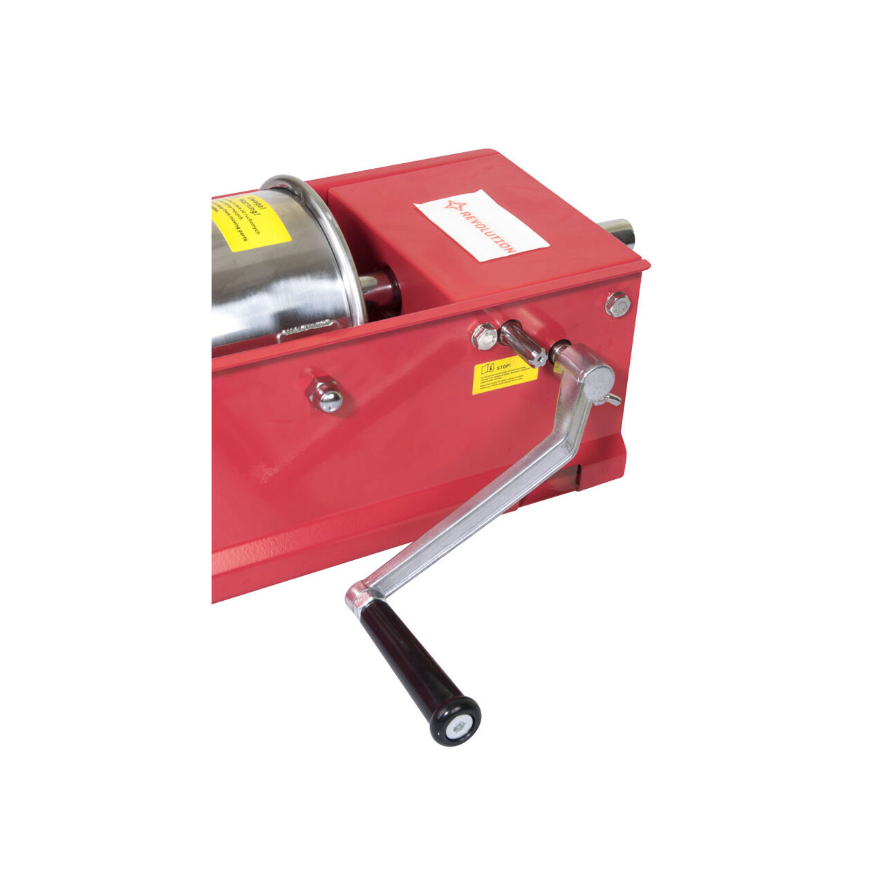 Aparat profesional umplut carnati orizontal, Revolution, capacitate 10 lt, 2 viteze umplere, corp inox, 3 palnii incluse, 74x41x(H)22 cm