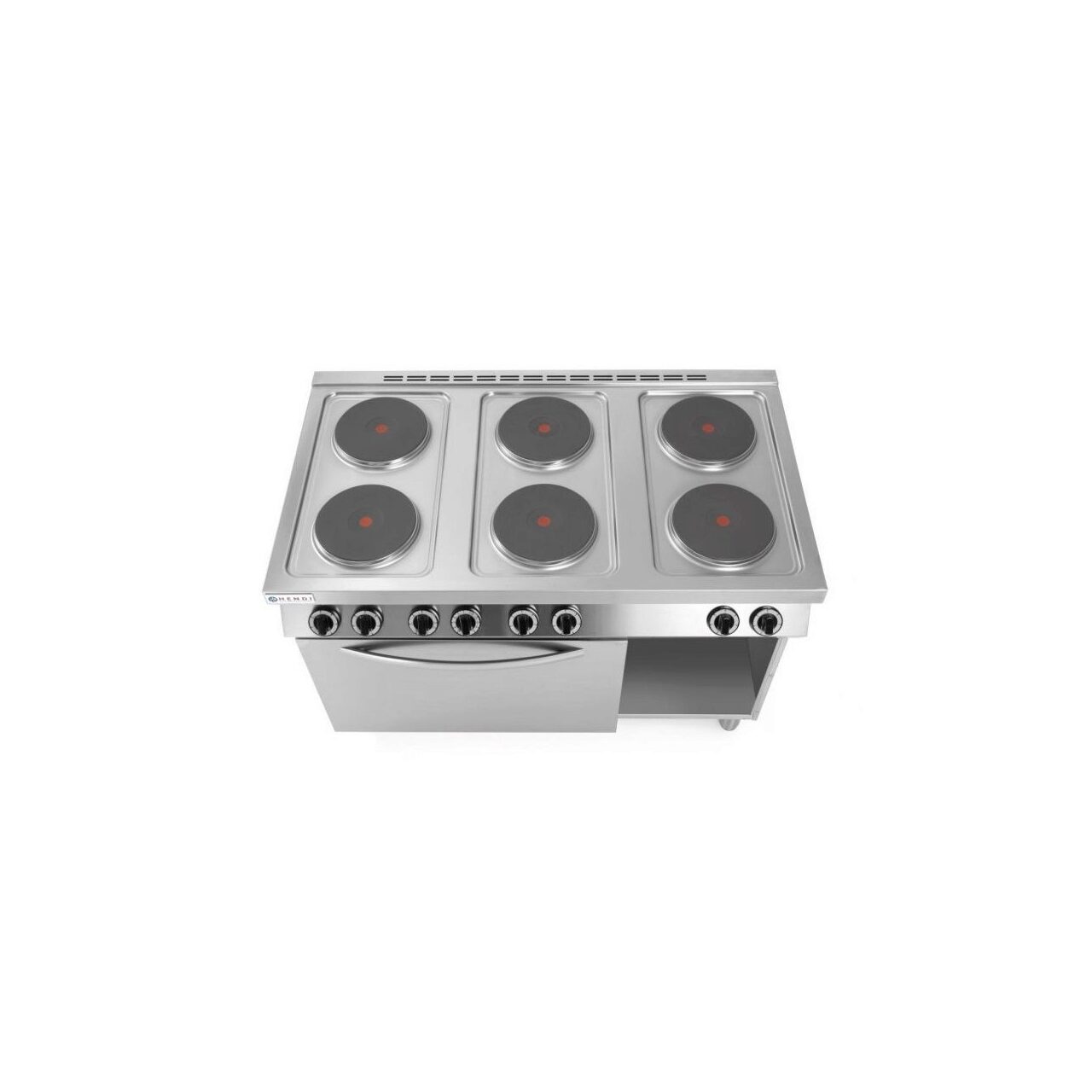 Aragaz electric Hendi Kitchen Line cu 6 plite si cuptor convectie 18.6W GN1/1, Inox, 1200x700x (H) 900 mm
