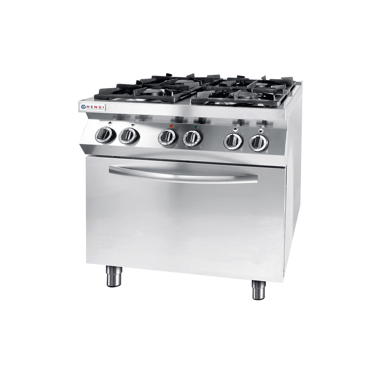 Aragaz profesional pe gaz Hendi Kitchen Line cu 4 arzatoare cu convectie electrica GN1/1 Inox 800x700x(H)900 mm