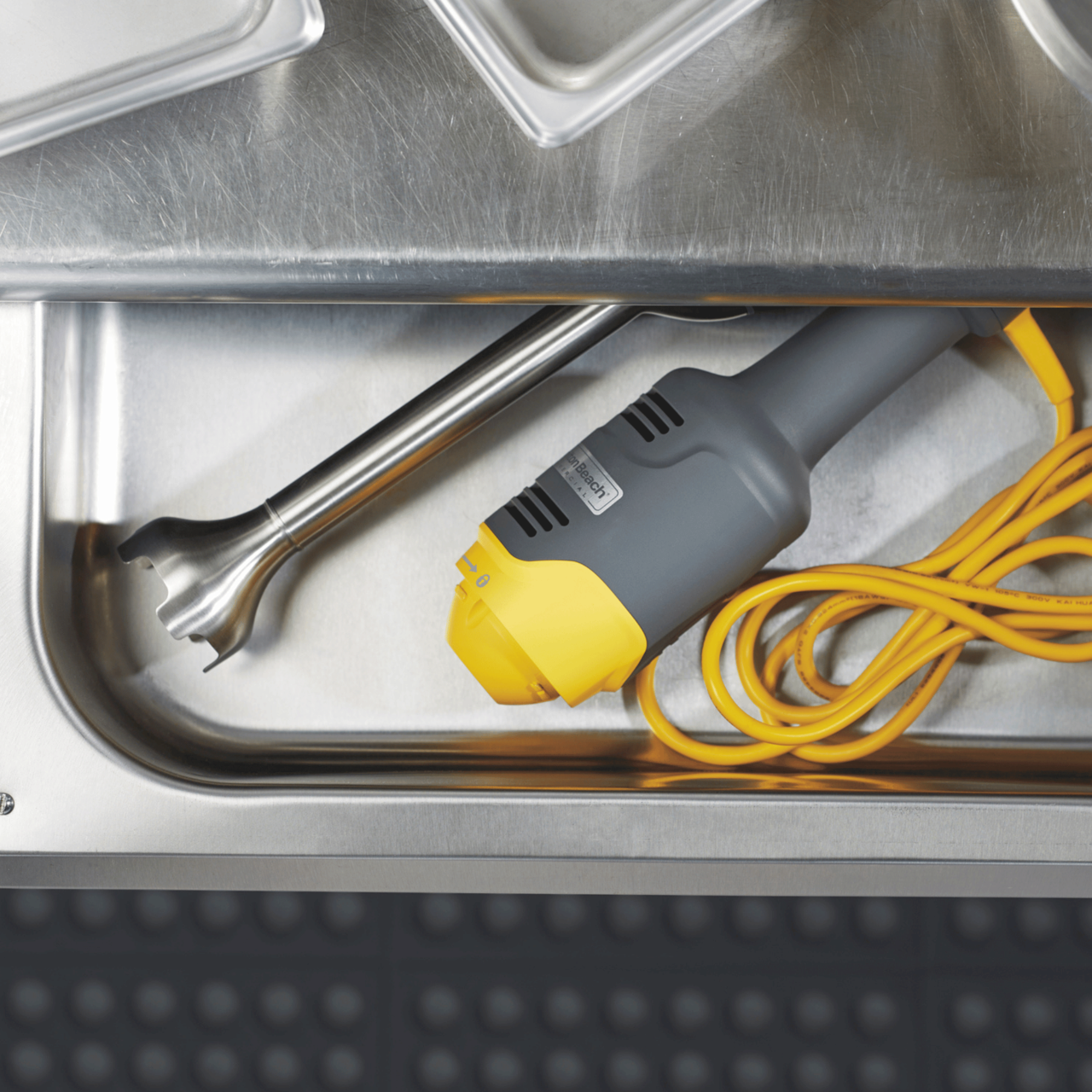 Prelucrați cu ușurință cantități mai mici cu blenderul de mână Hamilton Beach Commercial® BigRig™ cu braț de 23 cm. Designul său ergonomic și ușor de utilizat oferă un control maxim al amestecării în orice bucătărie profesională. Puteți prepara rapid sosuri, piureuri, supe și emulsii direct în oală sau recipient. Butonul de viteză variabilă (1-8) permite un control și o precizie sporite, iar mânerul este ideal pentru prepararea unor cantități de alimente de până la 11 litri.