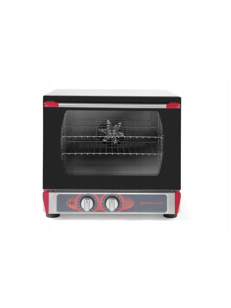 Cuptorul cu convecție Revolution by Hendi de 2600 W permite pornirea doar a elementului de încălzire inferioară. Astfel, este perfect pentru pizza sau pentru alimente care necesită o rumenire finală în partea inferioară. Dispune însă și de funcție grill, fiind soluția ideală pentru pregătirea cotletelor, a peștelui sau rumenirea la suprafață a alimentelor. Iar pentru că procesul de gătire a alimentelor se realizează cu ventilare, acestea se vor prepara cu aproximativ 25% mai rapid decât la coacerea convențională. Un alt avantaj al acestui tip de cuptor îl reprezintă faptul că suprafață interioară este netedă și ușor de curățat, iar pereții pot fi șterși doar cu o cârpă umedă.