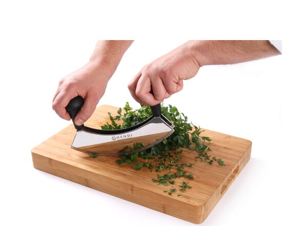 Cuțitul special pentru tocat Hendi este prevăzut cu lamă dublă din inox