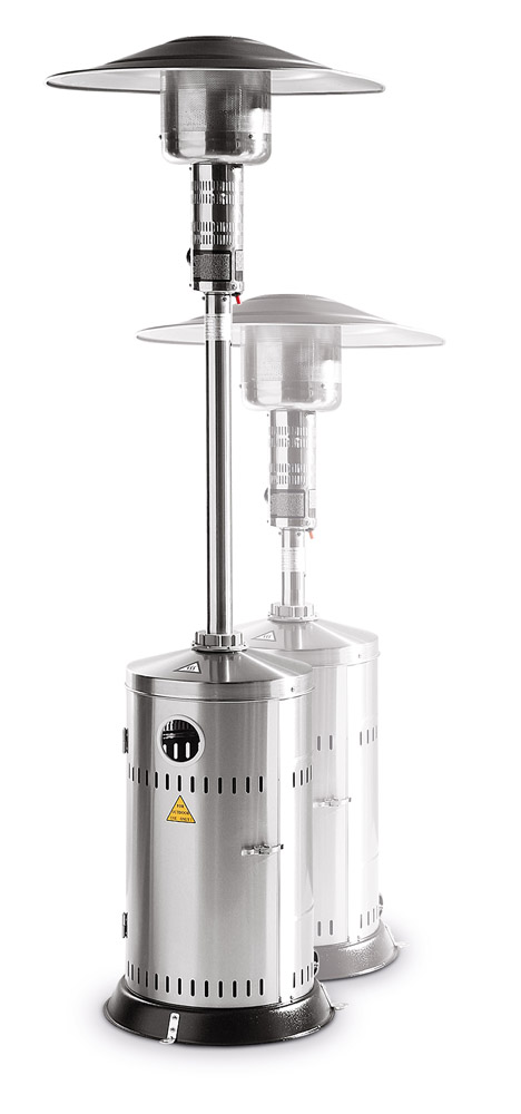 Este un tip de încălzitor potrivit pentru recipient de gaz de maximum 15 l, ideal pentru încălzirea teraselor sau a unei grădini, verande etc. Încălzitorul de terasă Hendi beneficiază de un design compact și de ușă cu balamale pentru înlocuirea ușoară a buteliei de gaz. Dispune de comutator pentru înclinare, dispozitiv de siguranță la aprindere și protecție a flăcării pentru siguranță sporită. Dispozitivul include aprindere electronică, furtun de gaz și regulator de presiune și este ușor de transportat datorită celor două roți cu care este echipat.
