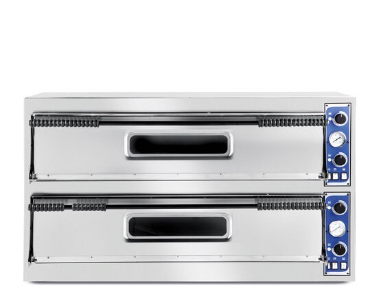 Cuptorul profesional de pizza Basic Slim Line de la Hendi are două camere cu încălzitoare reglate cu termostate independente