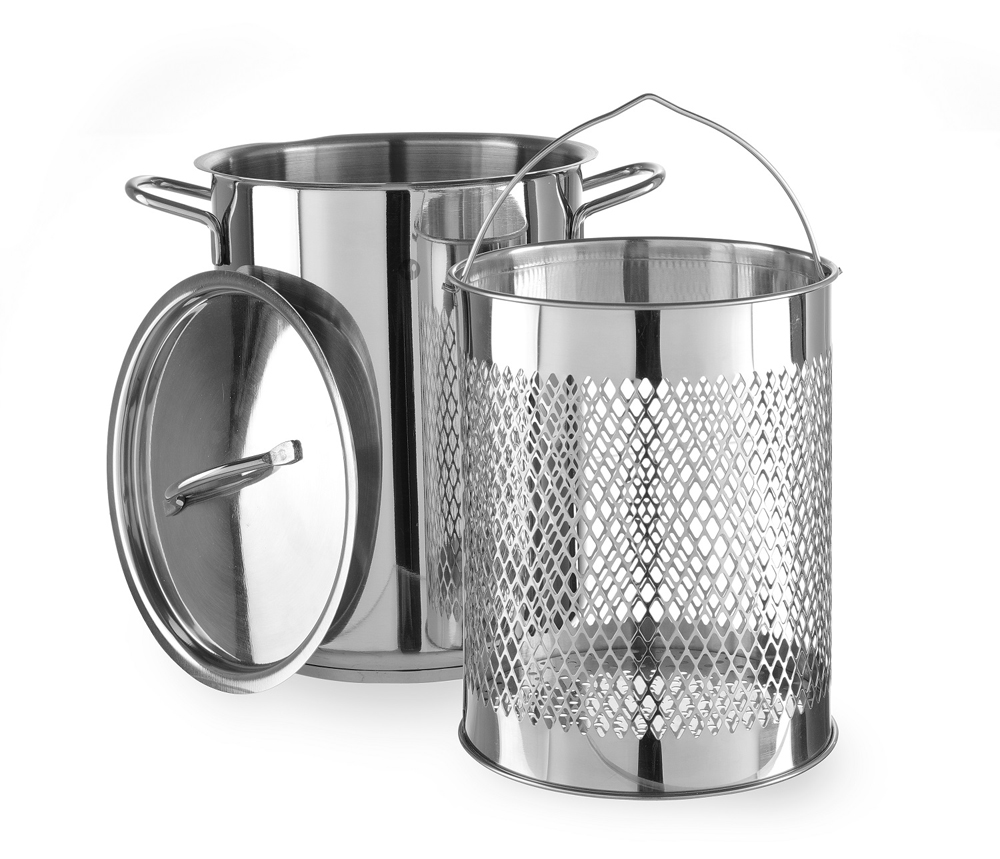 Set Hendi ø160 format din oală de inox, capac și coș pentru gătirea la abur. Se poate folosi și pentru pește sau paste