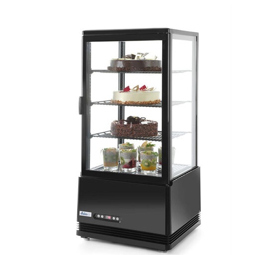 Vitrinele verticale de la Hendi (de ex. cea de 78 litri) sunt potrivite pentru expunerea prăjiturilor și băuturilor