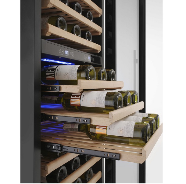 Vitrinele frigorifice pentru vinuri, de tipul răcitor de vin cu zonă dubla și iluminare cu led, asigură o prezentare elegantă produselor pe care vrei să le expui