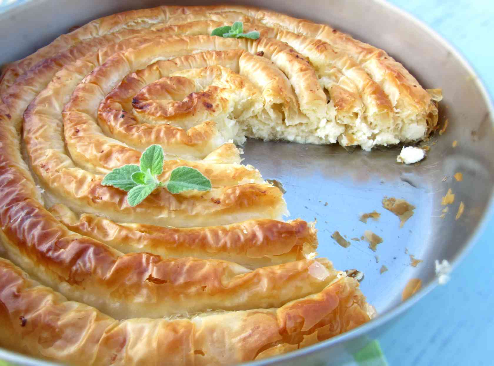 În bolul mixerului se amestecă făina cu sarea și apa călduță și se frământă. Se încorporează apoi ouăle unul câte unul. Se frământă din nou 5 minute, apoi aluatul se lasă jumătate de oră să se odihnească. Pentru umplutură se încorporează untul topit și gălbenușurile în brânza de vaci. Albușurile ouălor se bat bine cu un praf de sare, iar după ce devin ferme și lucioase se adaugă zahărul, coaja de lămâie și semințele de vanilie. Se mixează bine, apoi se adaugă cu paleta în compoziția de brânză, amestecând ușor. Într-o formă ramekin se pune o foaie de aluat care trebuie să depășească marginile, se adaugă compoziția de brânză, apoi se așază cealaltă foaie deasupra. Surplusul de aluat se îndepărtează cu cuțitul. Se lasă la copt, în cuptorul preîncins la 180°C, timp de jumătate de oră.