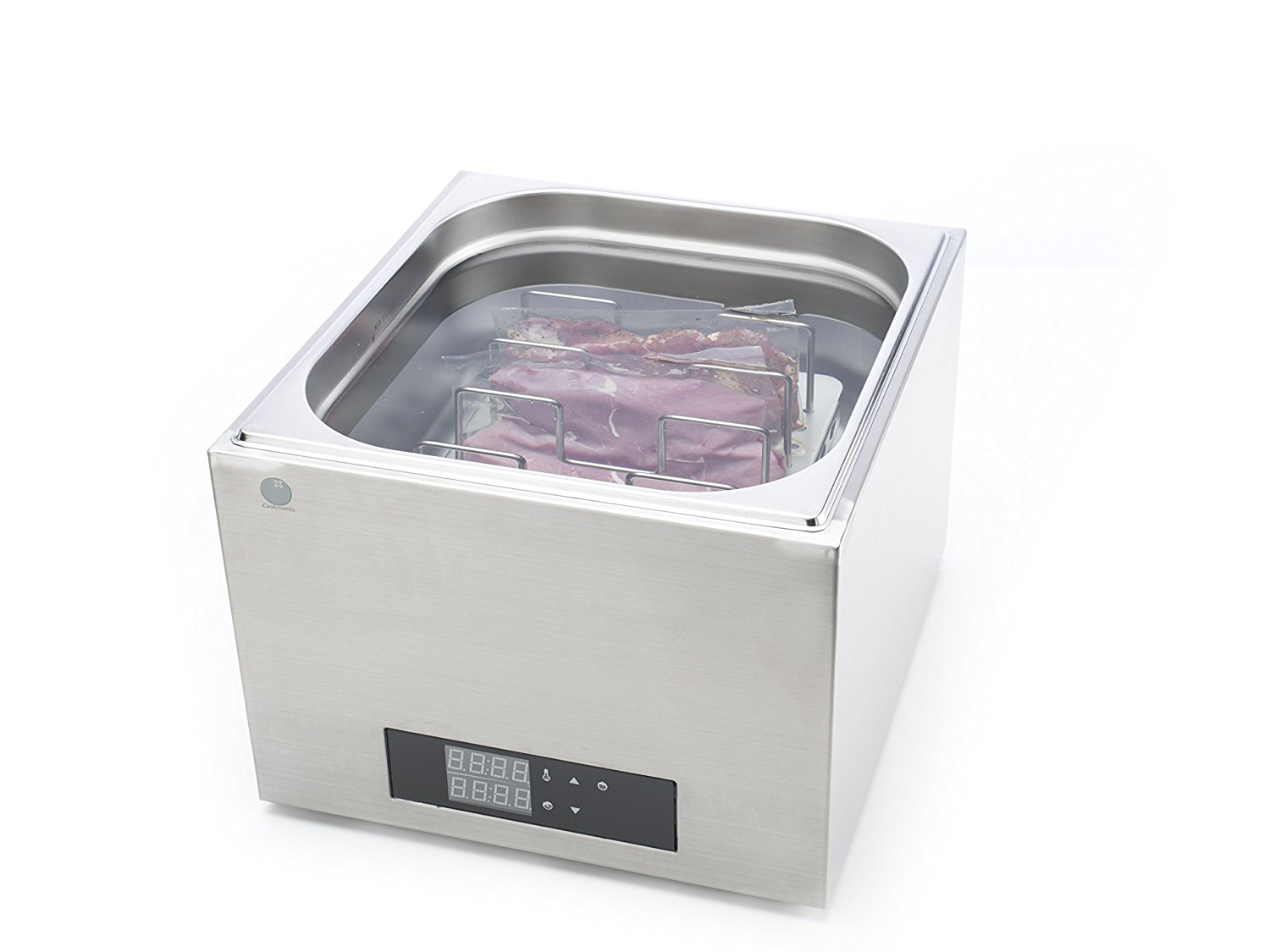 Capacul antipicurare, transparent este un avantaj, pentru că preparatele pot fi verificate fără a deschide capacul aparatului Sous Vide. Vasul detașabil, cu strat antilipire, ca la aparatul de gătit Sous-Vide Cookmania asigură curățarea ușoară. Design-ul robust și o carcasă din oțel inoxidabil șlefuit conferă aparatului rezistență la utilizarea frecventă. Aparatele Sous Vide dotate cu mânere și robinet de scurgere a apei din bazin sunt mai ușor de utilizat.