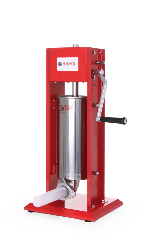 Este un aparat de capacitate mare, de 10 l, potrivit pentru uz profesional sau pentru familiile care prelucrează acasă o cantitate mare de carne. Corpul, cilindrul și pistonul sunt fabricate din oțel inoxidabil, iar aparatul este echipat cu un sistem de umplere cu două viteze, ușor de folosit. Pistonul poate fi scos ușor pentru curățare și umplere. Aparatul pentru umplut cârnați Hendi Profi Line este echipat cu rulmenți și mecanism din oțel întărit, rezistent la presiune și este dotat cu un set de patru pâlnii din oțel inoxidabil, cu diametre diferite: de 16, 22, 32 și 38 mm.