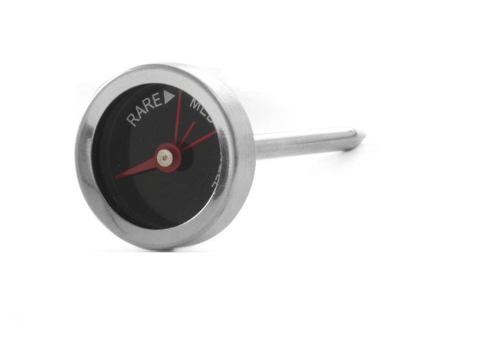 Un termometru profesional pentru friptură este un dispozitiv analogic confecționat din inox, cu un interval de măsurare a temperaturii între - 45 și 200°C. Prevăzut cu o sonda din oțel inoxidabil de 50 mm, termometrul profesional pentru carne poate fi folosit la cuptor. Și, ținând cont că indică cu maximă acuratețe temperatura cărnii, putem fi siguri că friptura va fi preparată conform dorințelor clientului. Termometrul este prevăzut cu un indicator „rare-medium-well done”, astfel încât carnea va fi gătită exact atât cât trebuie.
