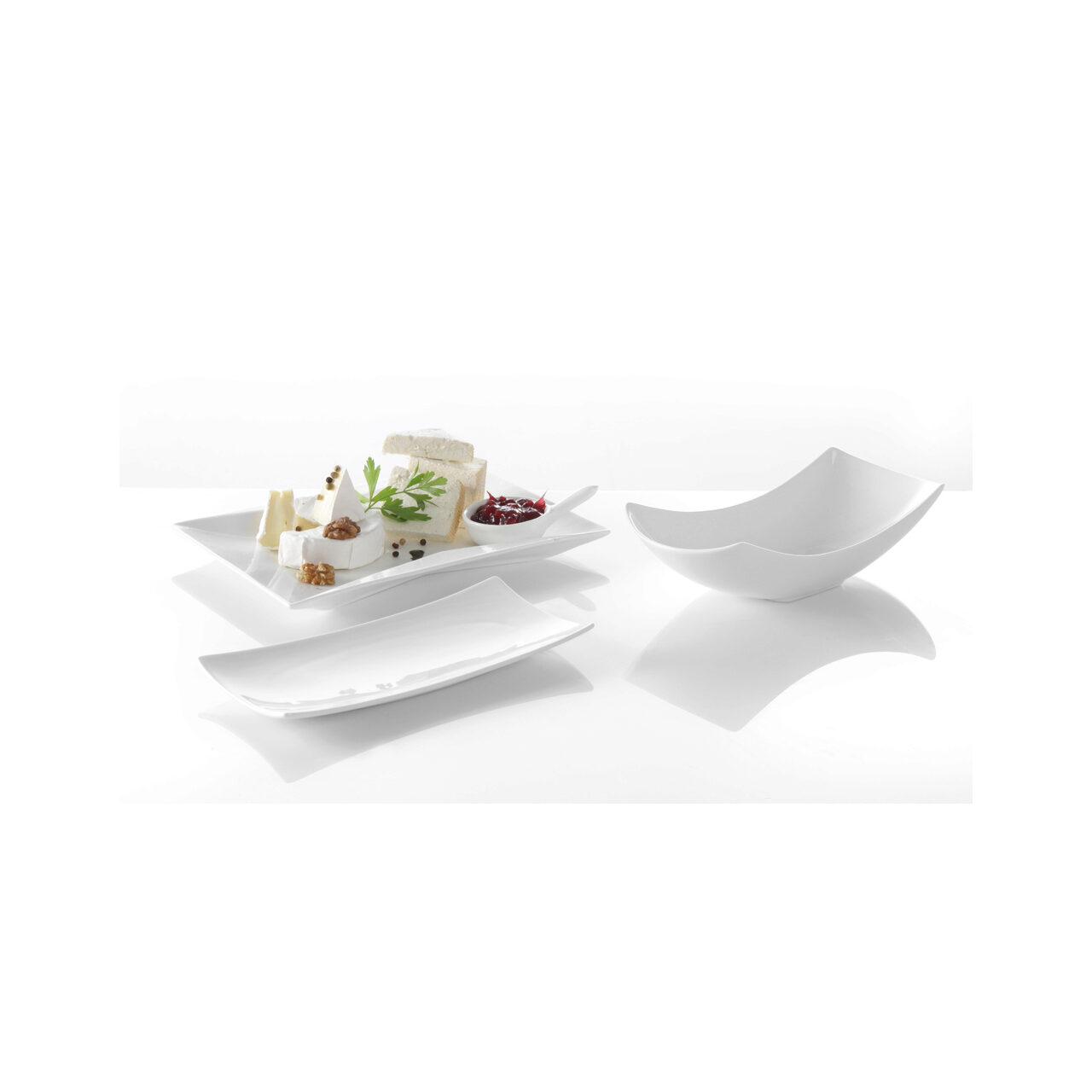 Bol servire 290x136x(H)80 mm, portelan ultrarezistent, forma curbata, potrivit si pentru cuptor pana la 600 gr C, Hendi Vanilla