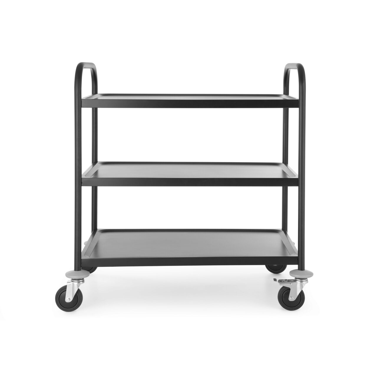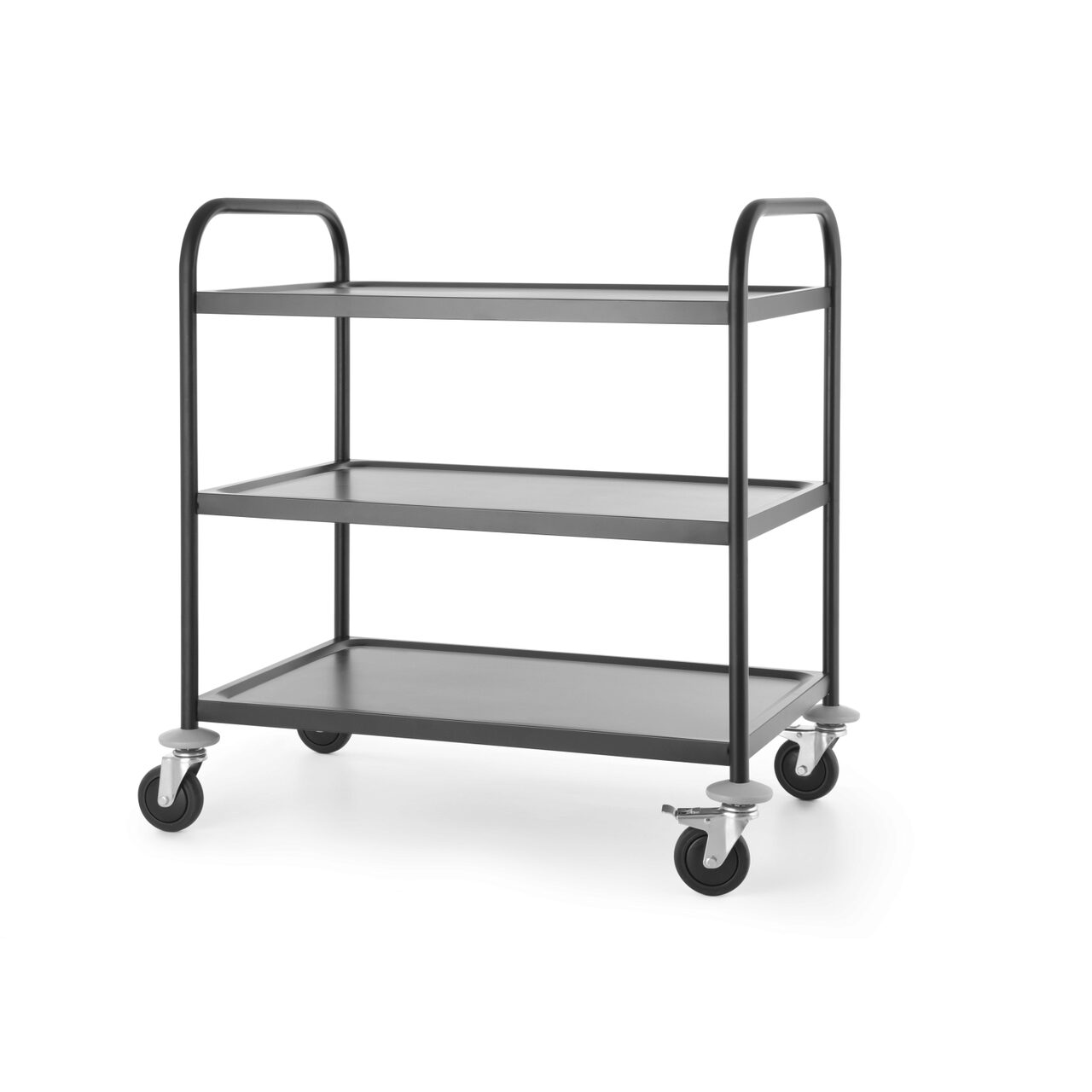 Carucior bucatarie 3 nivele, cu roti, negru mat, pentru depozitare si servire, Hendi, incarcare maxima 50 kg/nivel, 823×500x(H)950 mm