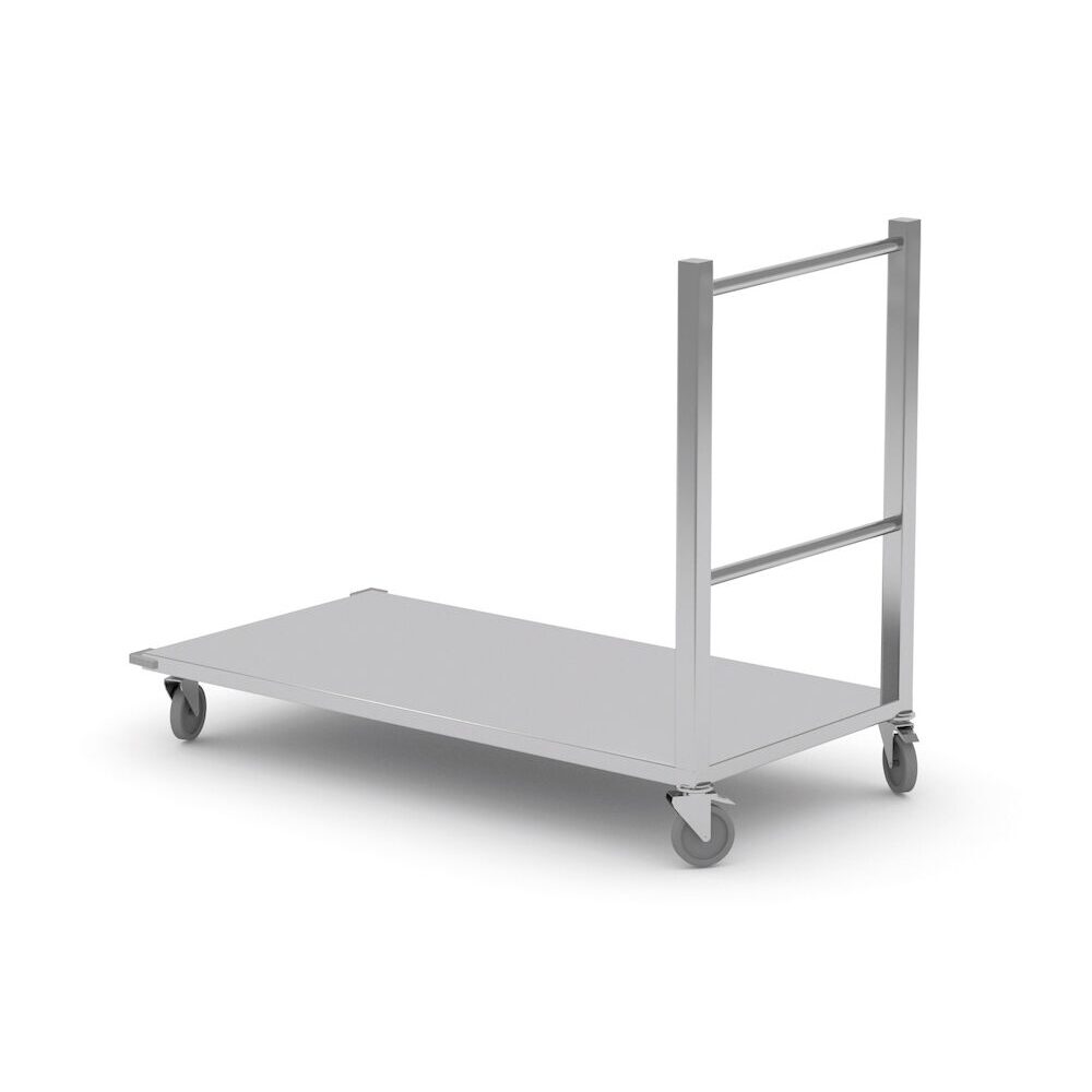 Pentru uz profesional. Fabricat în întregime din oțel inoxidabil, asigurând o utilizare pe termen lung. Constructie sudata stabila (colturi sudate). Sarcina uniformă admisă: 70 kg/m2. 4 roți pivotante la 360°, dintre care 2 cu frână. Diametrul roții: ø125 mm.