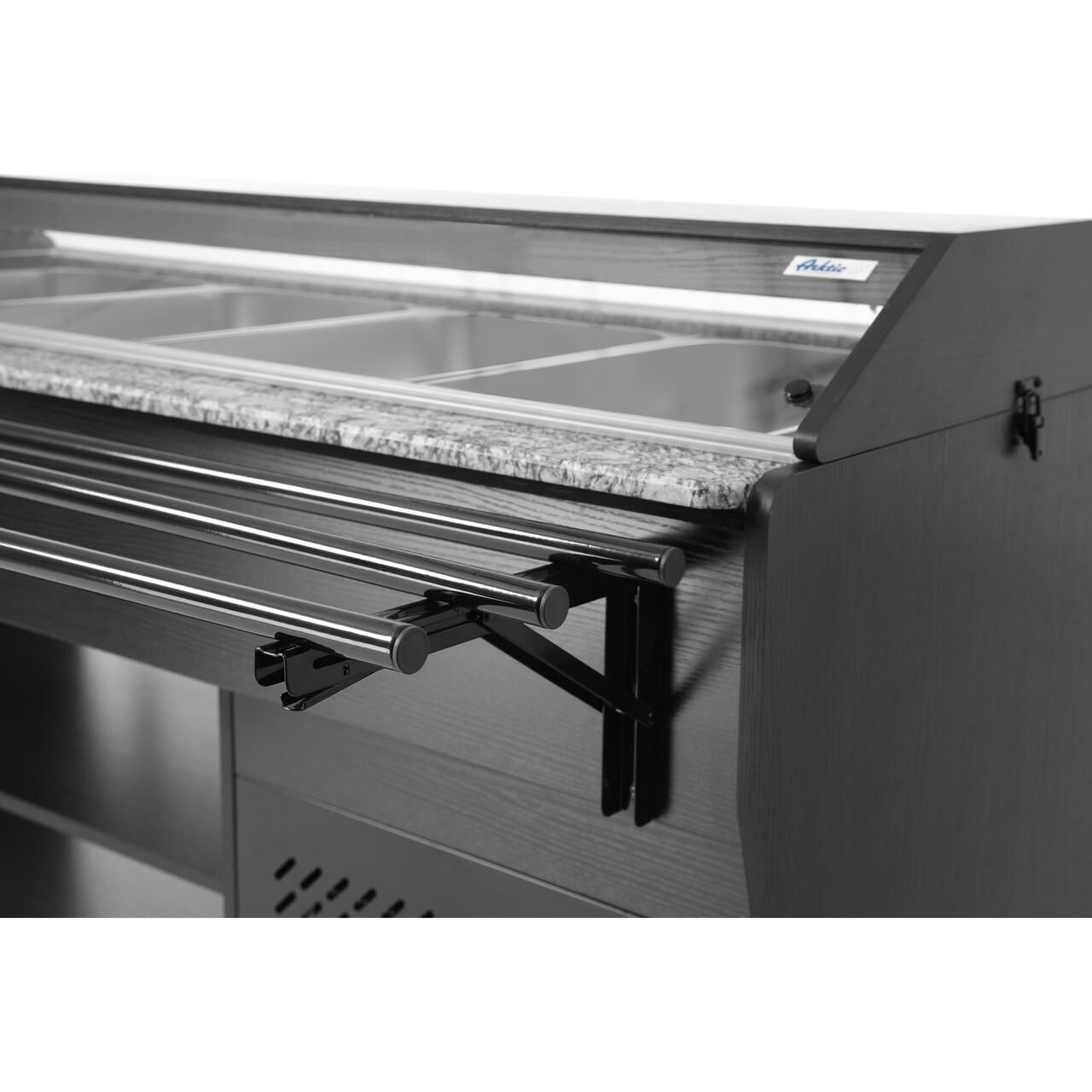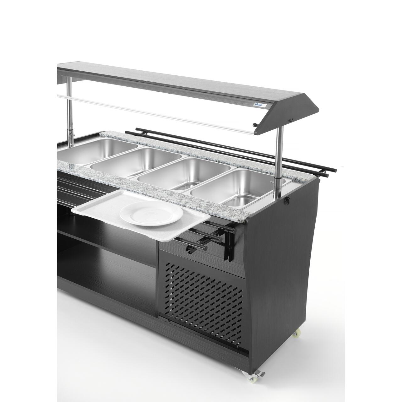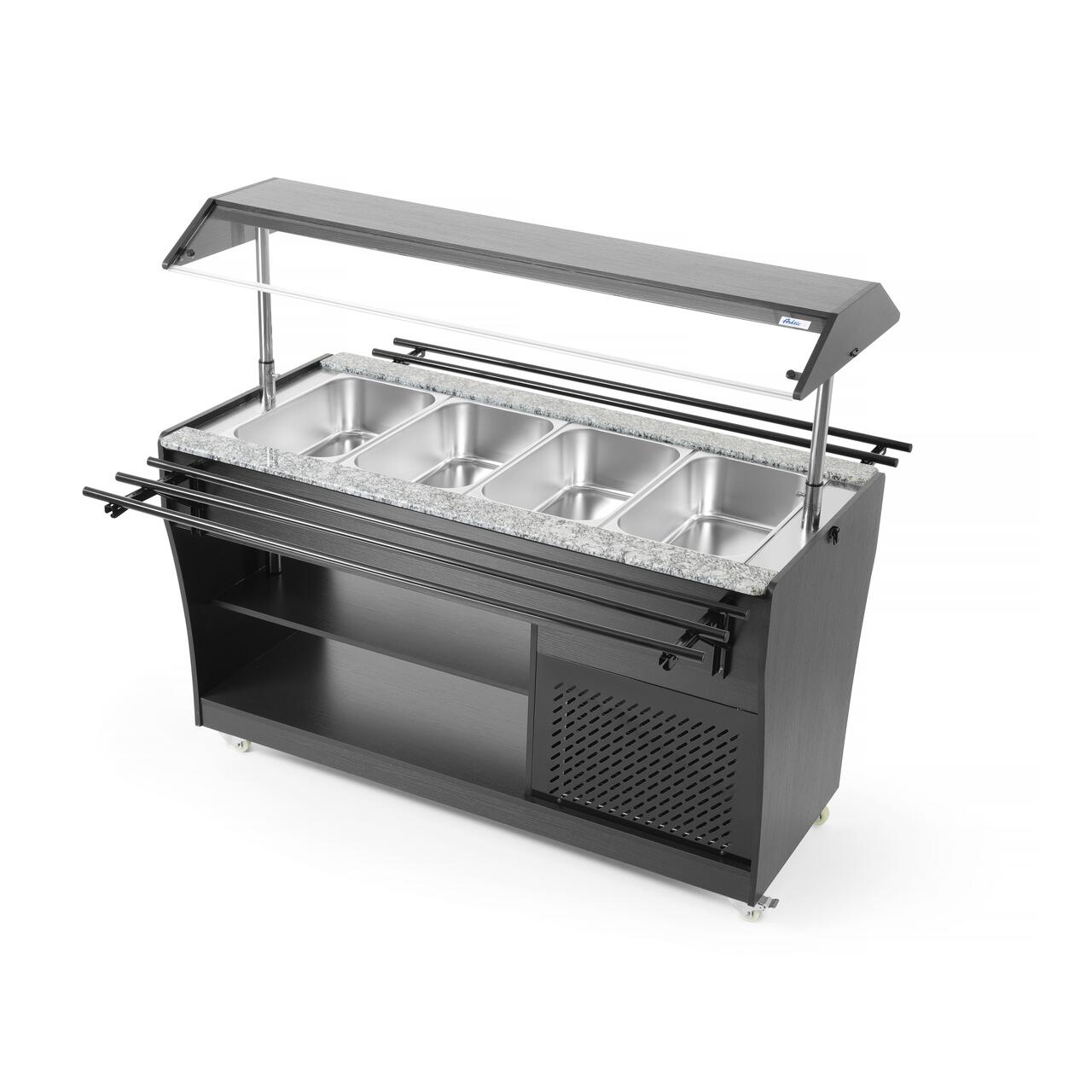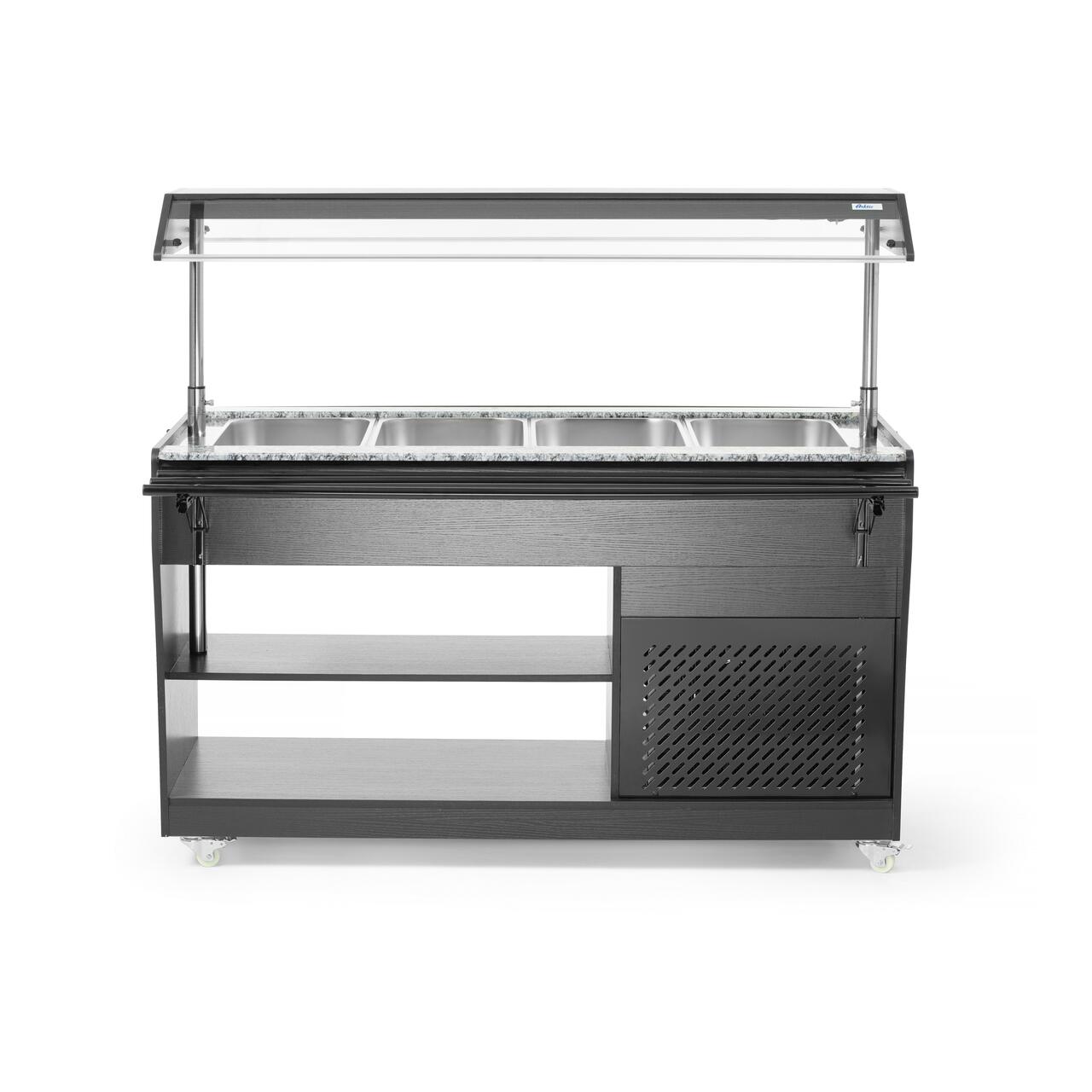 Contine 4 recipiente GN 1/1 cu o adancime maxima de 150 mm. 4 containere GN 1/1 incluse.
