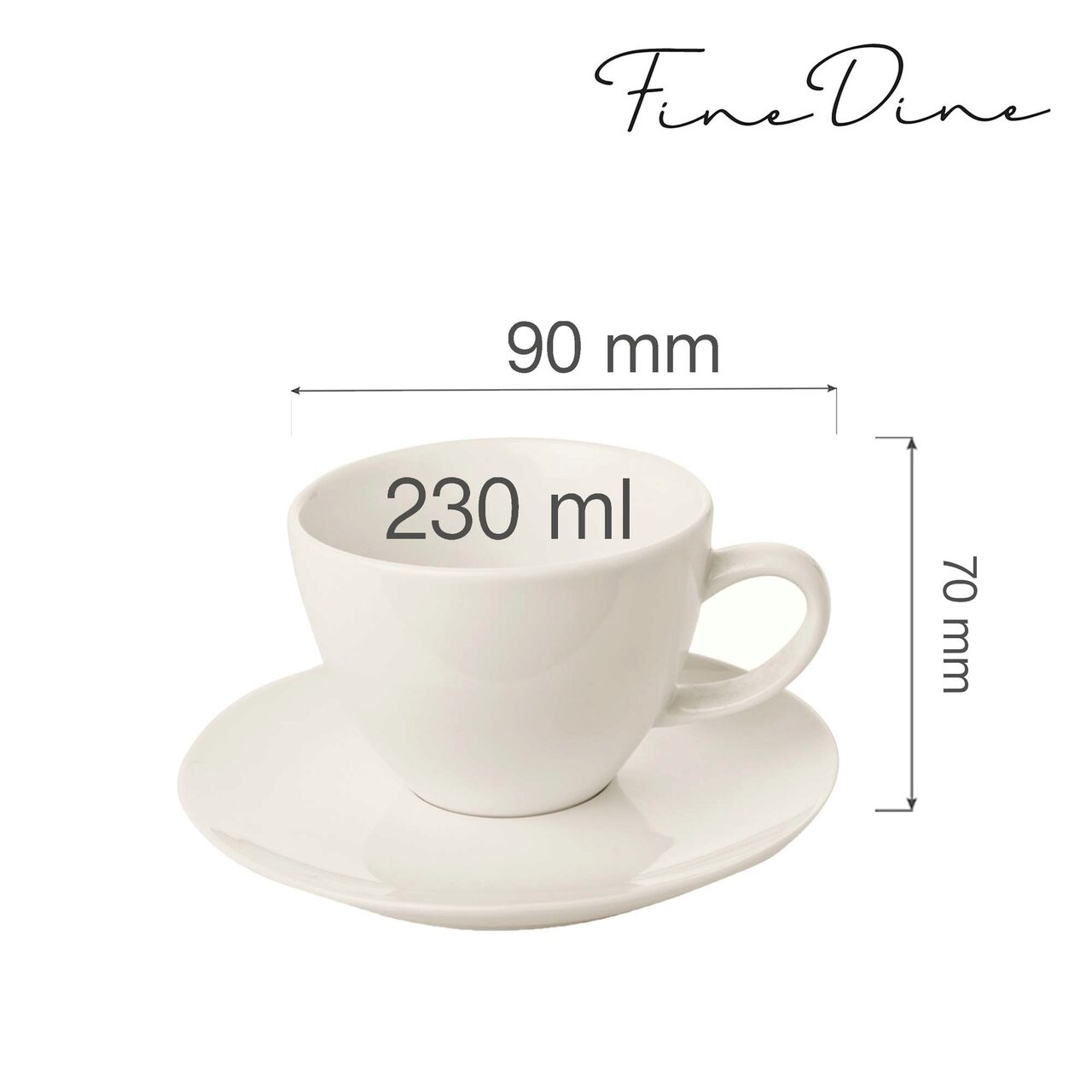 Ceașcă elegantă cu farfurioară pentru ceai și cafea Fine DIne, Crema 230 ml