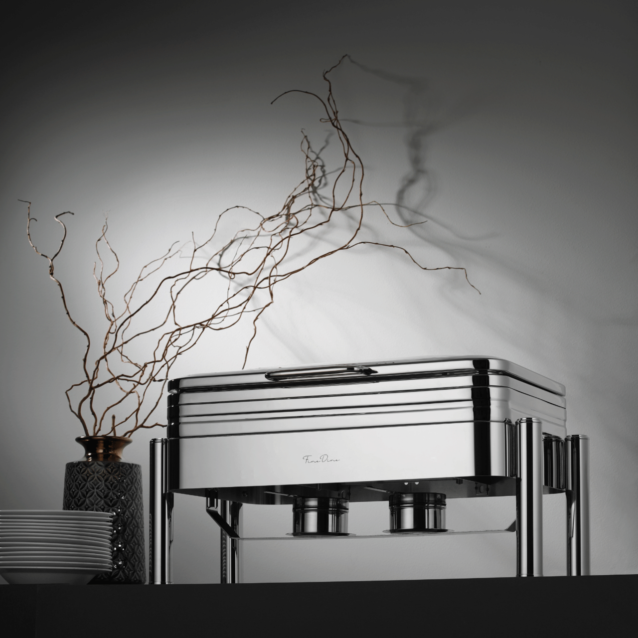 Chafing Dish Fine Dine sunt echipate cu un mecanism hidraulic care încetinește capacul.