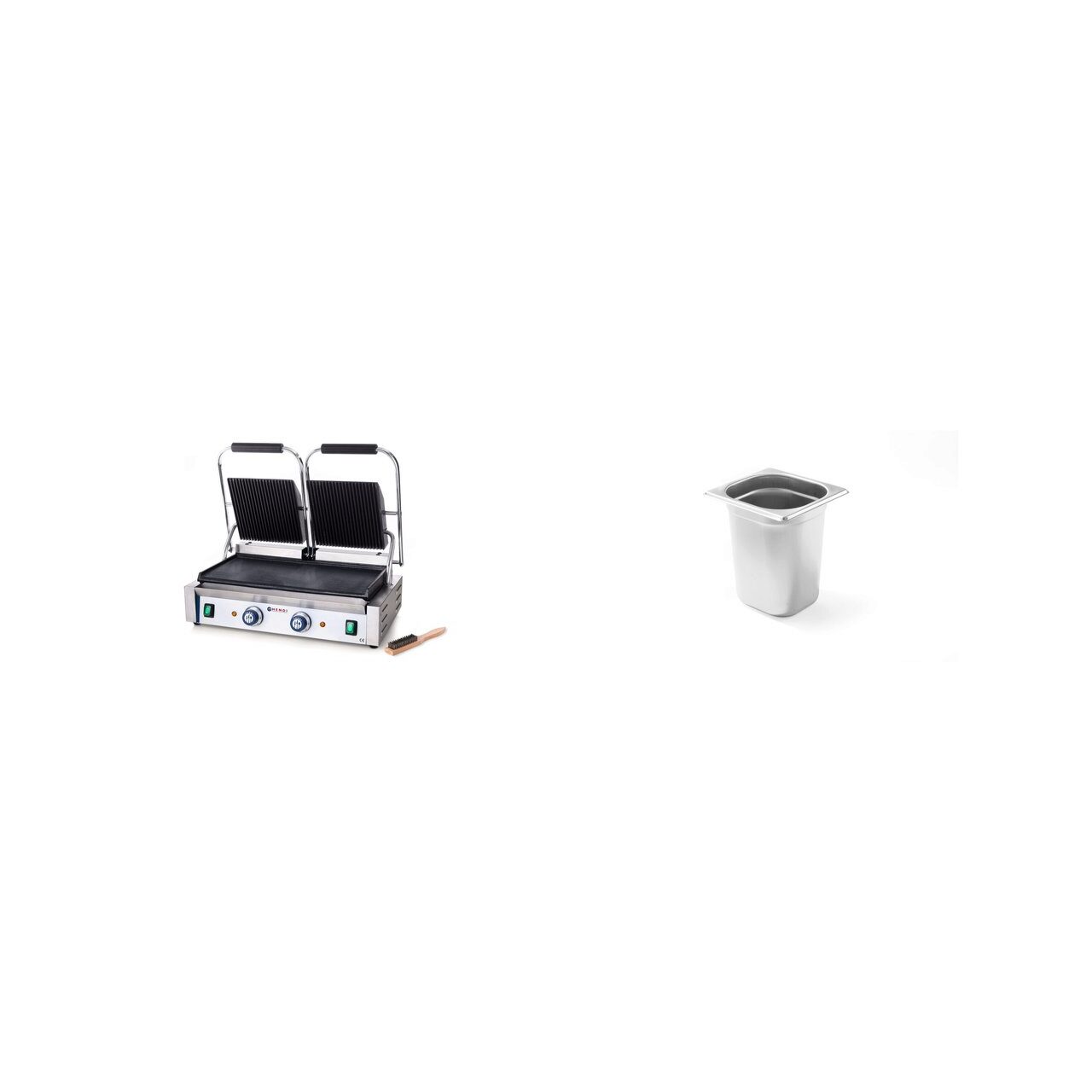 Contact grill Hendi - versiune dubla - partea superioara striata si cea inferioara neteda, electric