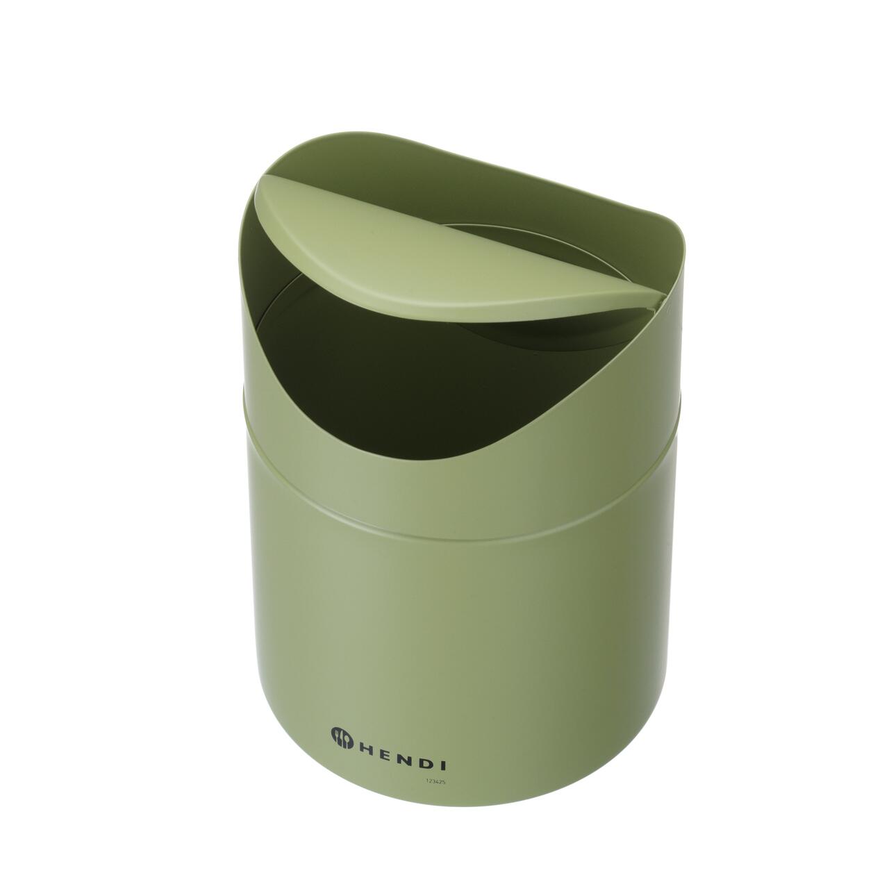 Coș de gunoi de masă cu capac basculant, HENDI, 1,2L, Verde, ⌀120x(H)165mm