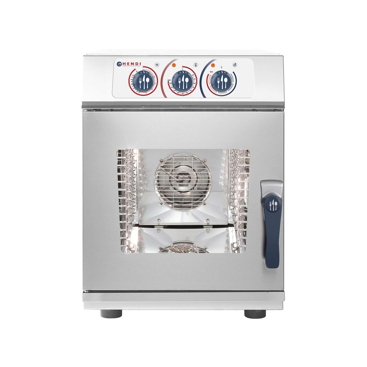 Cuptor convectie cu umidificare, compact HENDI NANO, 6 tavi GN 1/1, 2 elemente incalzire, 1 ventilator reversibil, termostat reglabil, 50-260 gr C, timer 0 - 120 min, 700 W, 530x842x(H)730 mm