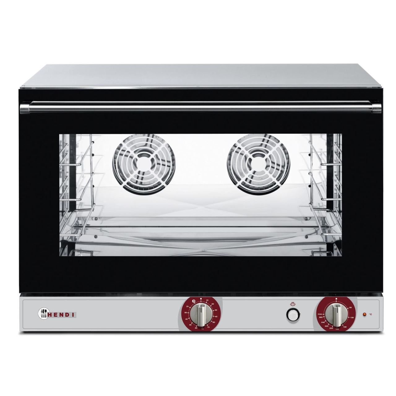 Cuptor convectie cu umidificare Hendi, capacitate 4 tavi 600 x 400 mm, 2 elemente incalzire, 2 ventiloare reversibile, termostat reglabil 0 - 280 gr C, timer 0-120 min, 6200 W, 800x755x516 mm