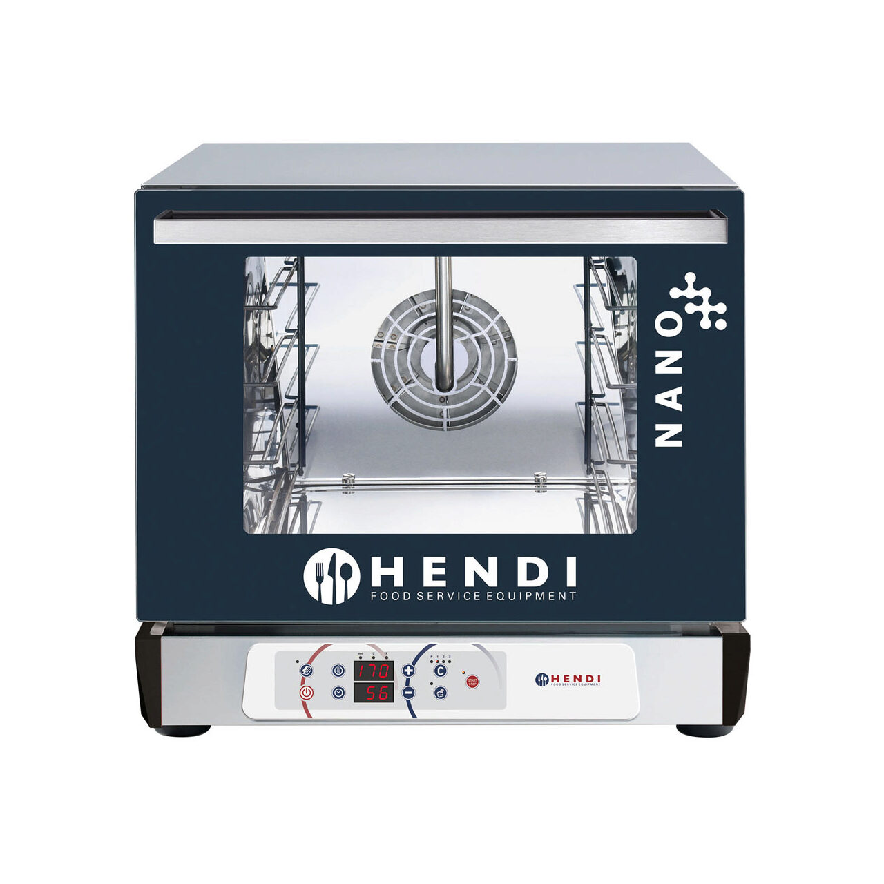 Cuptor convectie HENDI NANO, capacitate 4 tavi 450x340 mm, 2 elemente incalzire, termostat reglabil, 50-260 gr C, timer 0 - 120 min, 3100 W, panou frontal digital, 560x595x(H)530 mm