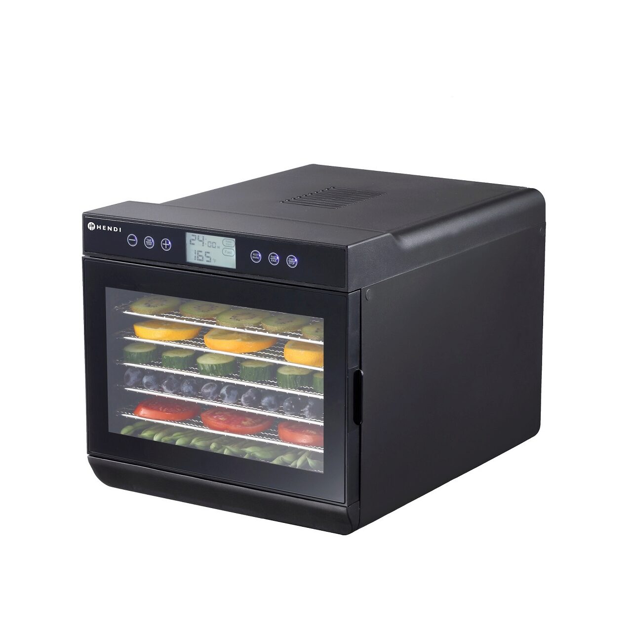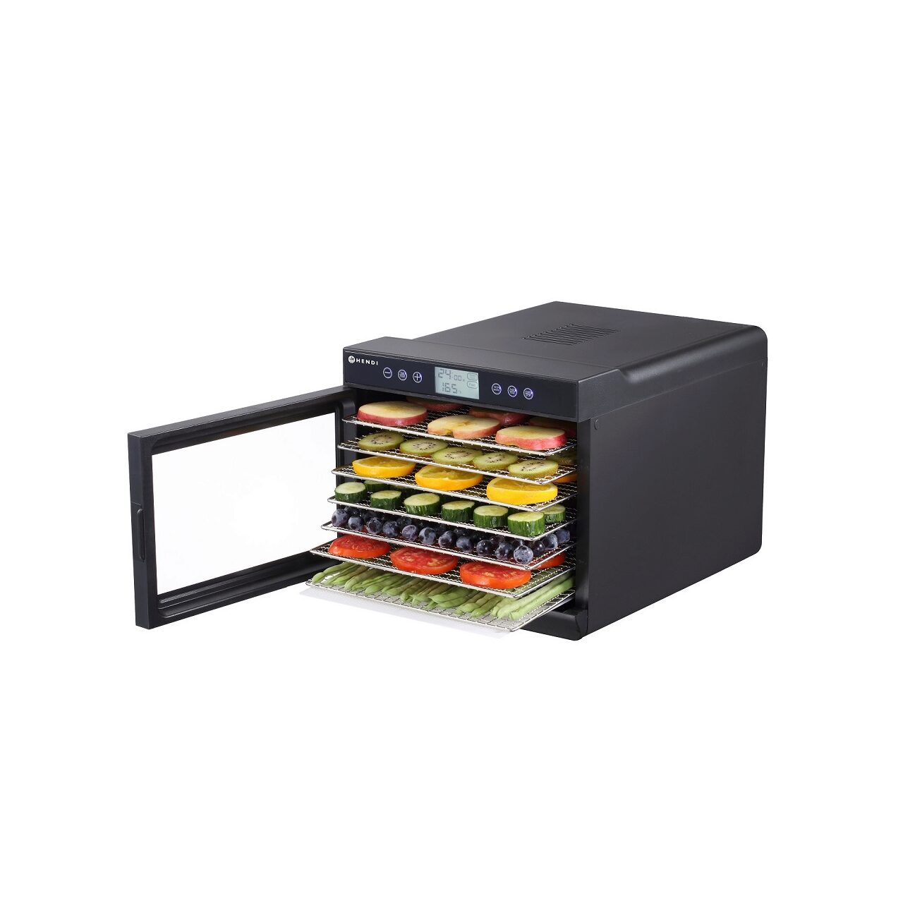 Deshidrator alimente Hendi Kitchen Line, PRO 2020, 7 tavi, DISPLAY, 500 W, temperatura reglabila 35-70°C, Negru, Timer, Control Digital, 345x450x(H)315 mm