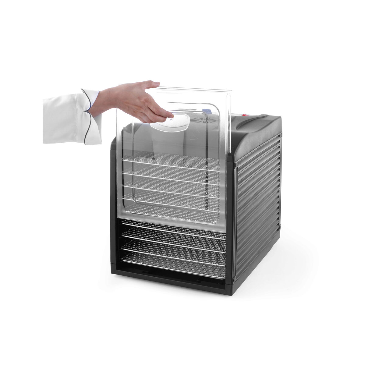 Pentru un stil de viata sanatos si alimentatie sanatoasa alege sa folosesti deshidratorul de alimente Hendi Kitchen Line care este incapator, cu 9 tavi unde iti poti usca orice timp de aliment.