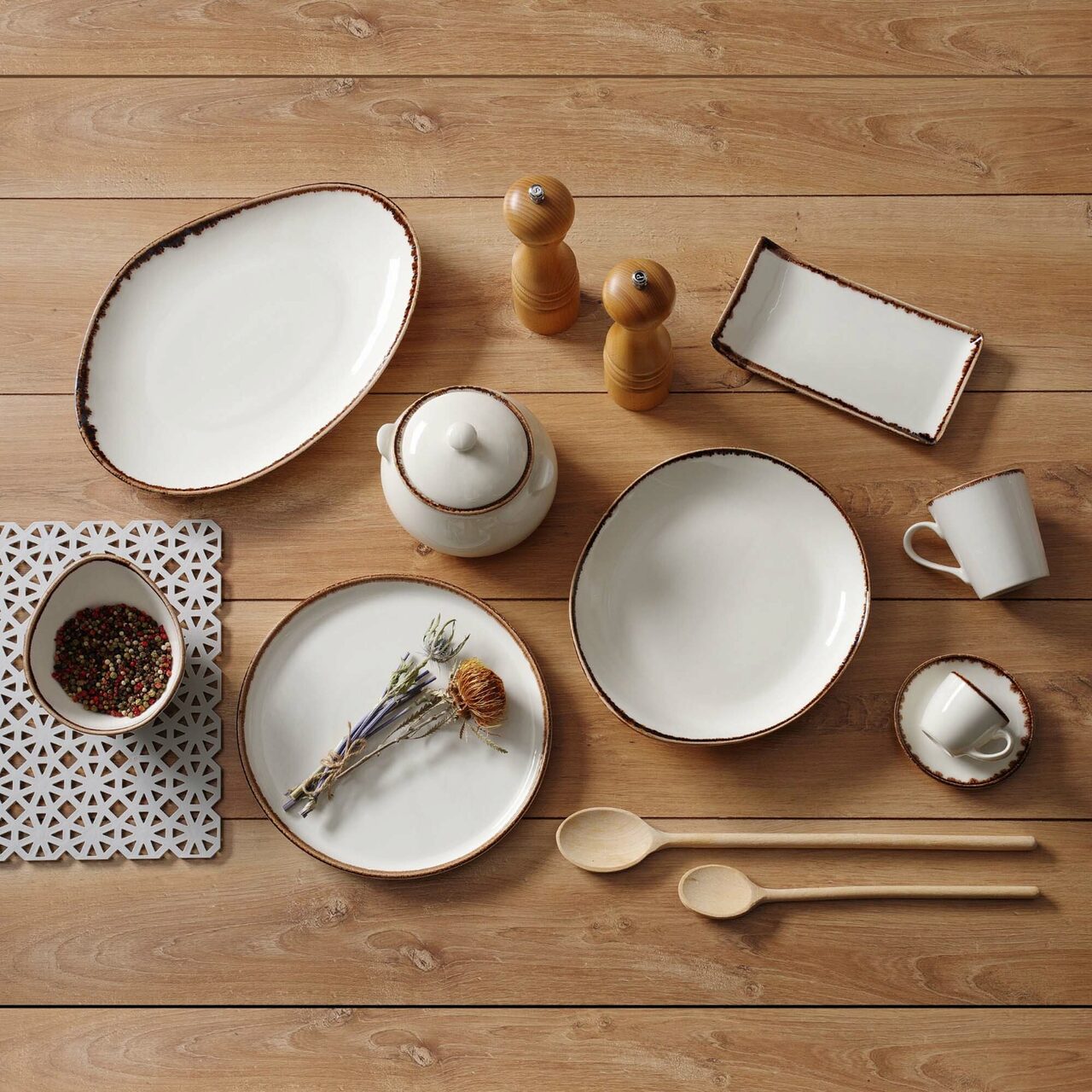 Bogata colecție de porțelan decorat manual în cinci culori vibrante. Combinați elementele în nuanțe crem, portocaliu, albastru, gri și verde măslinie pentru a crea un aspect unic și surprinzător al mesei, iar mâncarea se va prezenta la fel de bine cum și gustă. Veselă durabilă și rezistentă, concepută pentru a suporta rigorile utilizării într-o bucătărie profesională. Material: porțelan tip Vitrified Temperatura arderii: 1050° și 1400°C Rezistență la temperatură: 180°C