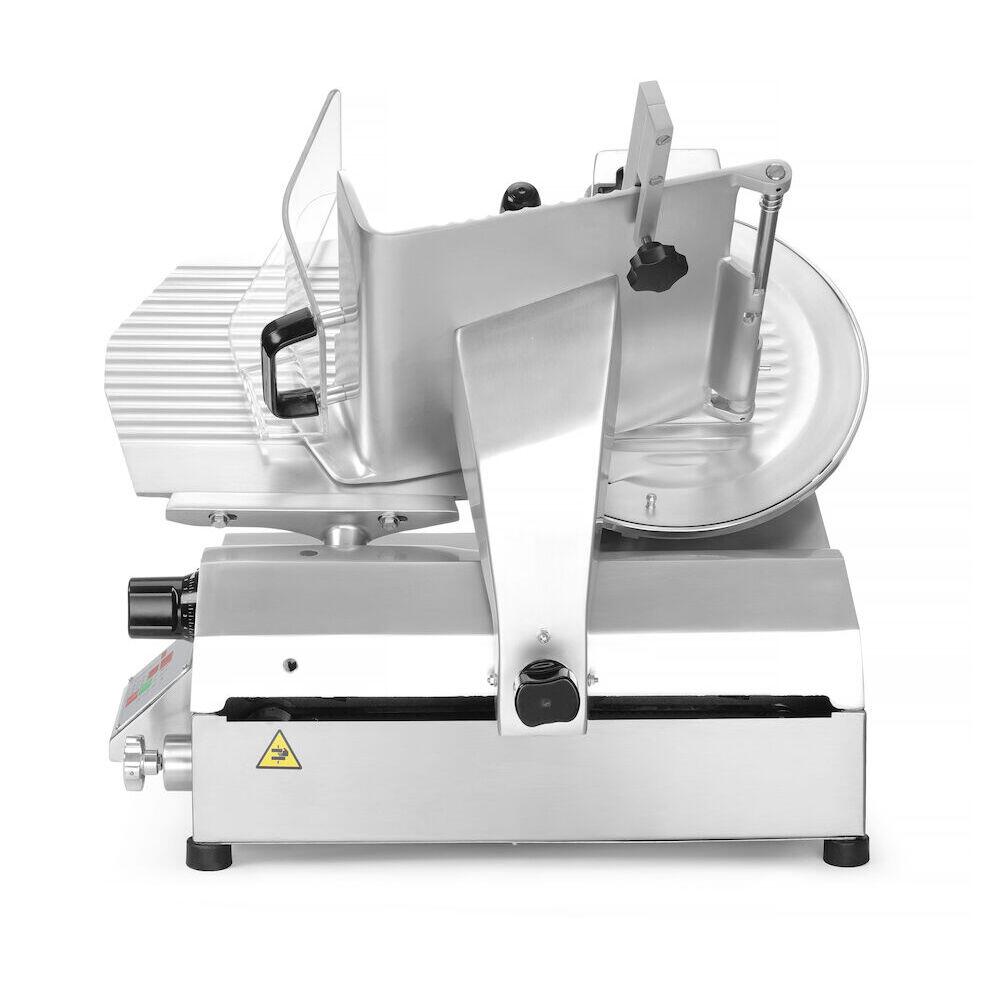 Dimensiunea maxima aproximativa a produsului feliat: 310x260 mm. Caruciorul lamei se poate deplasa automat in timpul felierii. Posibilitatea de a programa felierea automata a produselor cu viteza de transport constanta sau variabila. Aparatul numara feliile.