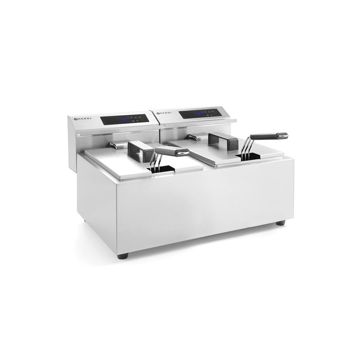 Friteuza electrica profesionala, 2x8 litri, 3500W, Hendi Mastercook digitala, termostat reglabil 0-190 gr C, corp inox, 60.5x45.5x(H)34.5 cm
