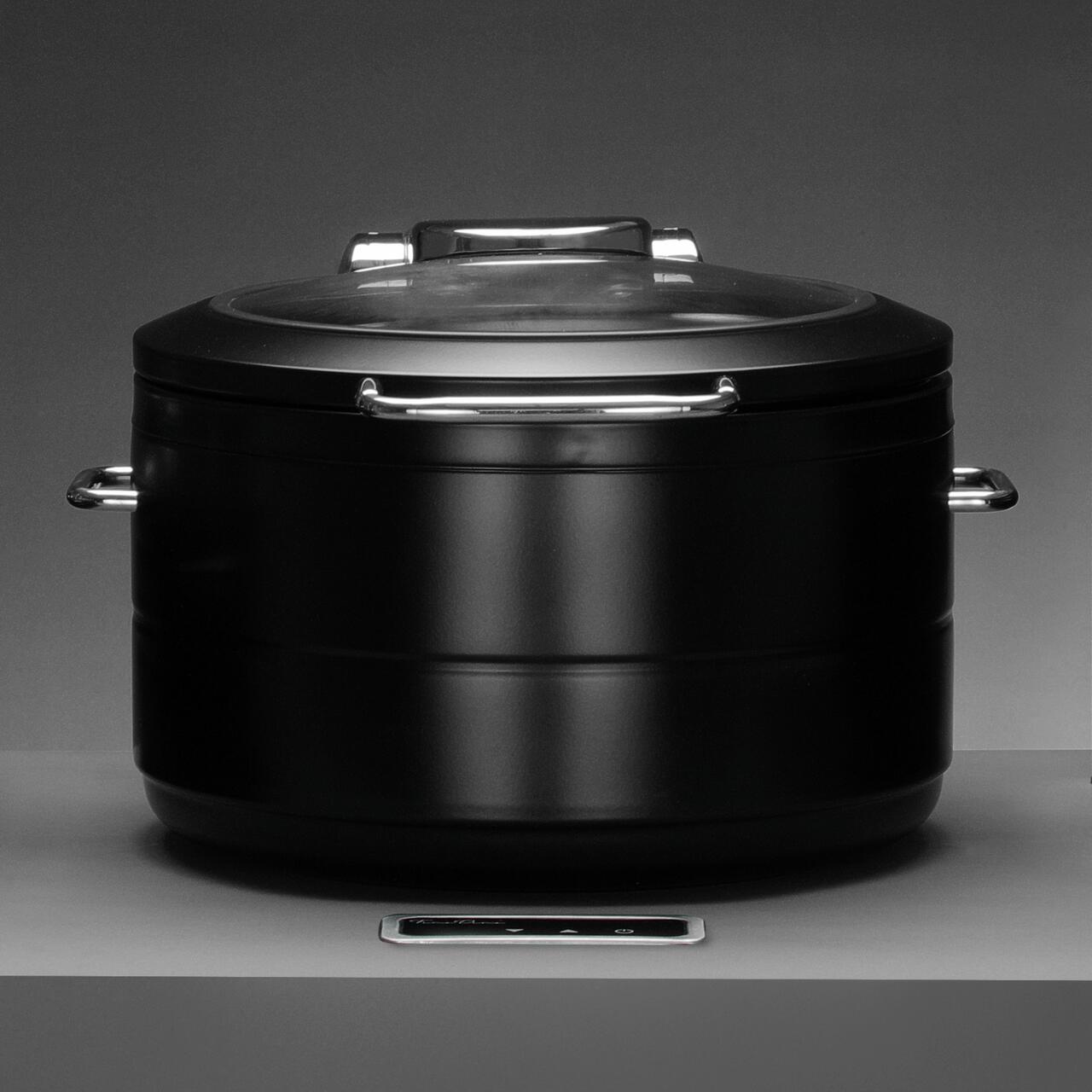 Incalzitor cu inductie rotund cu capac din sticla De Luxe Black, 9l Fine Dine