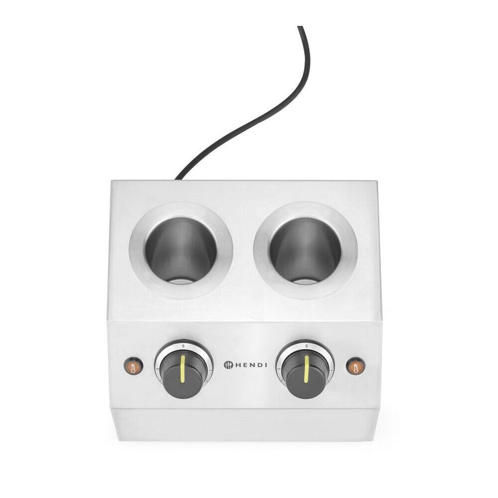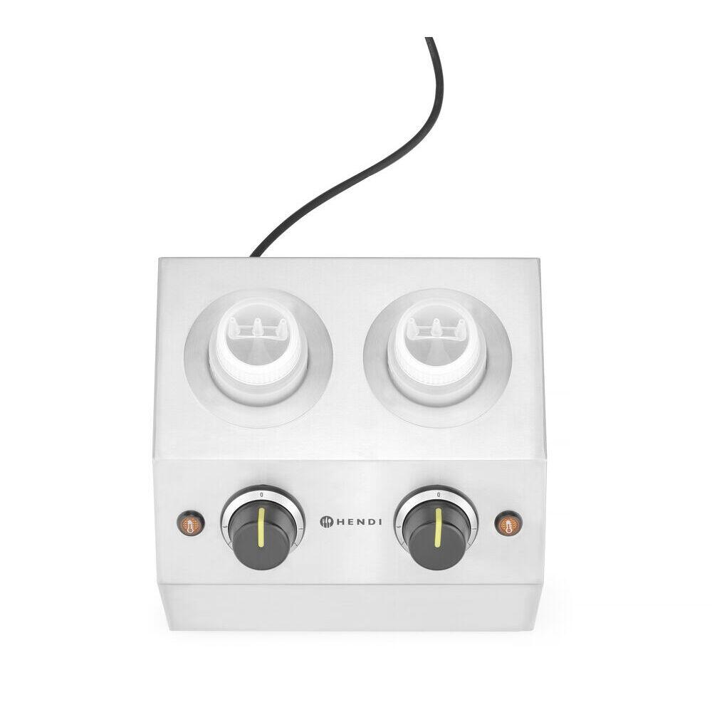Încălzitorul pentru sos HENDI este echipamentul perfect pentru a păstra sosul de ciocolată și alte sosuri calde la temperatura potrivită pentru a le turna ușor peste înghețată, prăjituri și alte deserturi.