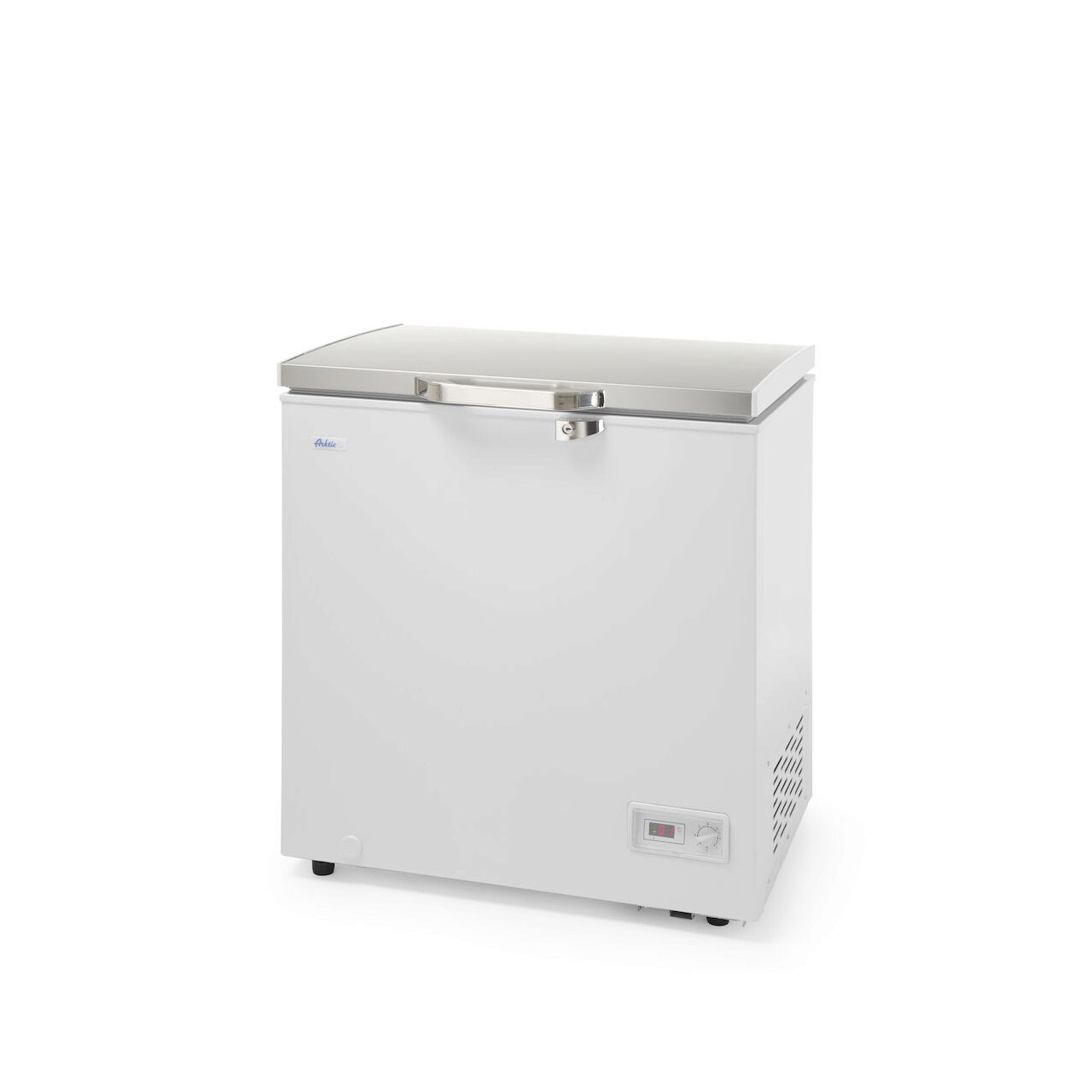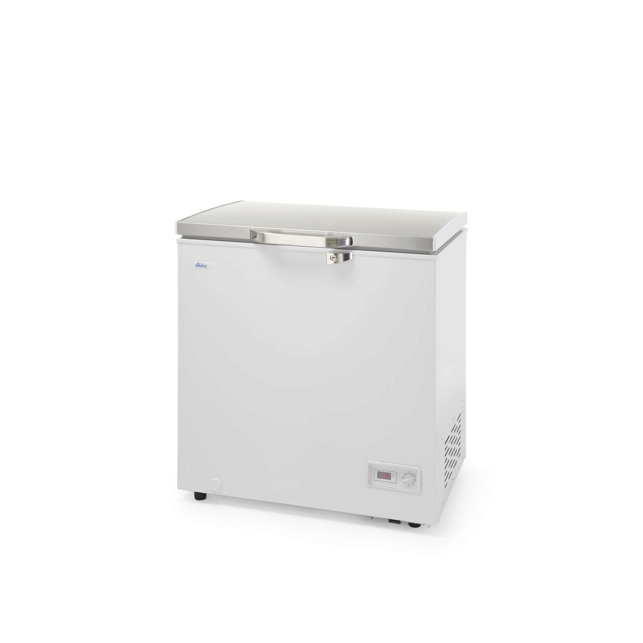 Lada frigorifica profesionala Arktic by Hendi se poate folosi atat pentru uz casnic cat si in scopuri profesionale, in bucatarii de restaurante si firme de catering. Lada frigotifica are corp de aluminiu si izolatie de spuma poliuretanica de 70 mm pentru a asigura o temperatura constanta in interior si a reduce consumul de energie.