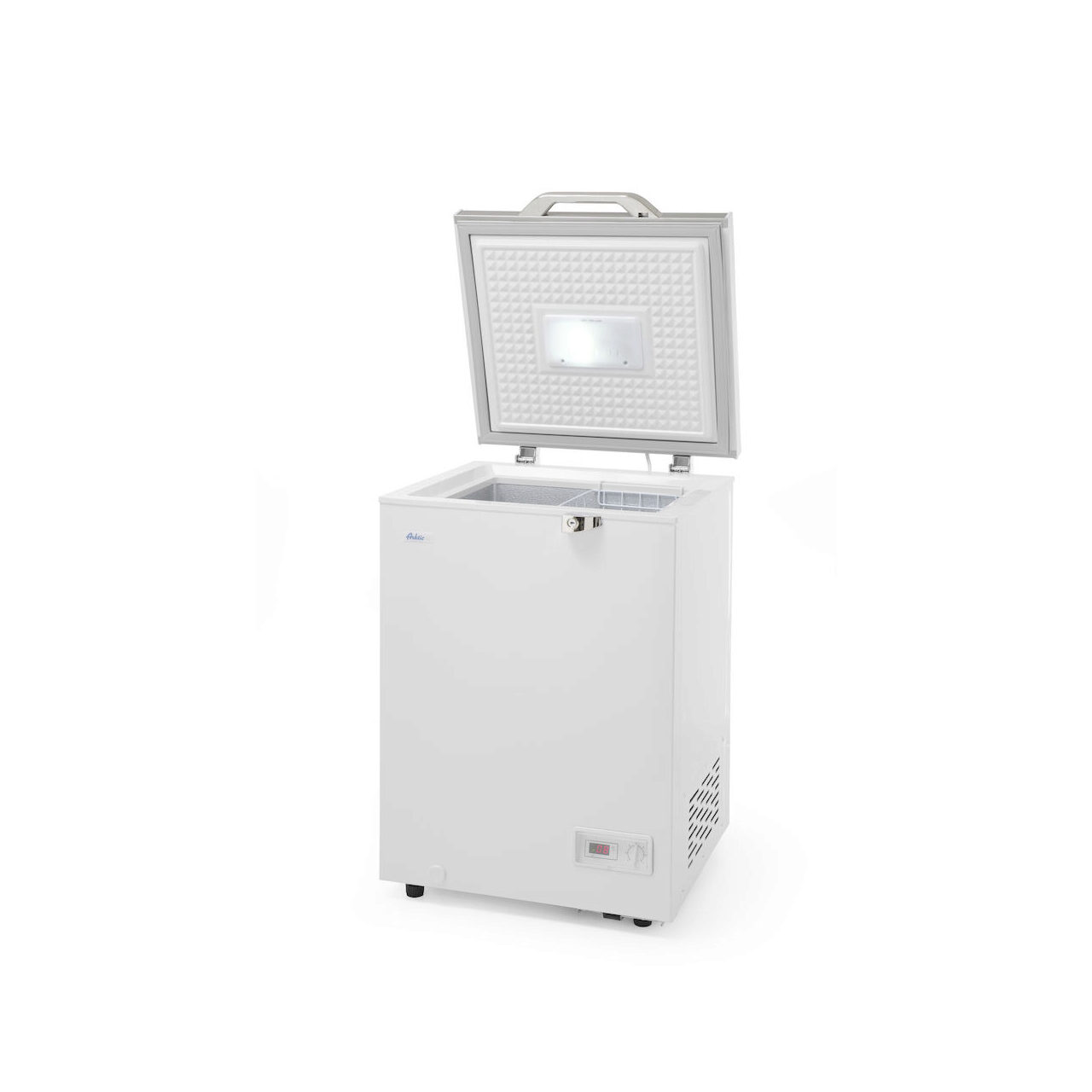 Lada frigorifica profesionala Arktic by Hendi se poate folosi atat pentru uz casnic cat si in scopuri profesionale, in bucatarii de restaurante si firme de catering. Lada frigotifica are corp de aluminiu si izolatie de spuma poliuretanica de 70 mm pentru a asigura o temperatura constanta in interior si a reduce consumul de energie.