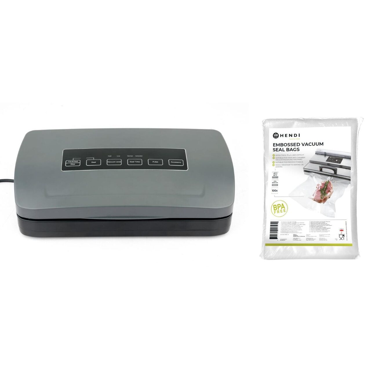 Mașina de ambalat în vid HENDI Strip cu alimentator pe rolă sigilează eficient alimente și produse nealimentare în pungi gofrate cu lățimea de până la 310 mm. Cu o carcasă durabilă din ABS, comenzi ușor de utilizat, timpi de sigilare dubli și o pompă cu vibrații de 6,5 l/min, oferă performanțe fiabile pentru diverse nevoi de ambalare.