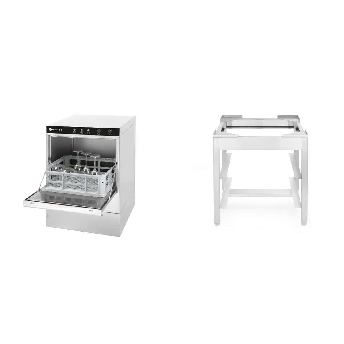 Pachet Masina profesionala de spalat pahare K40 Hendi 230 W 470x510(+325)x(H)710 mm plus Suport podea pentru masina de spalat vase, Inox Hendi 470x500x(H)500 mm