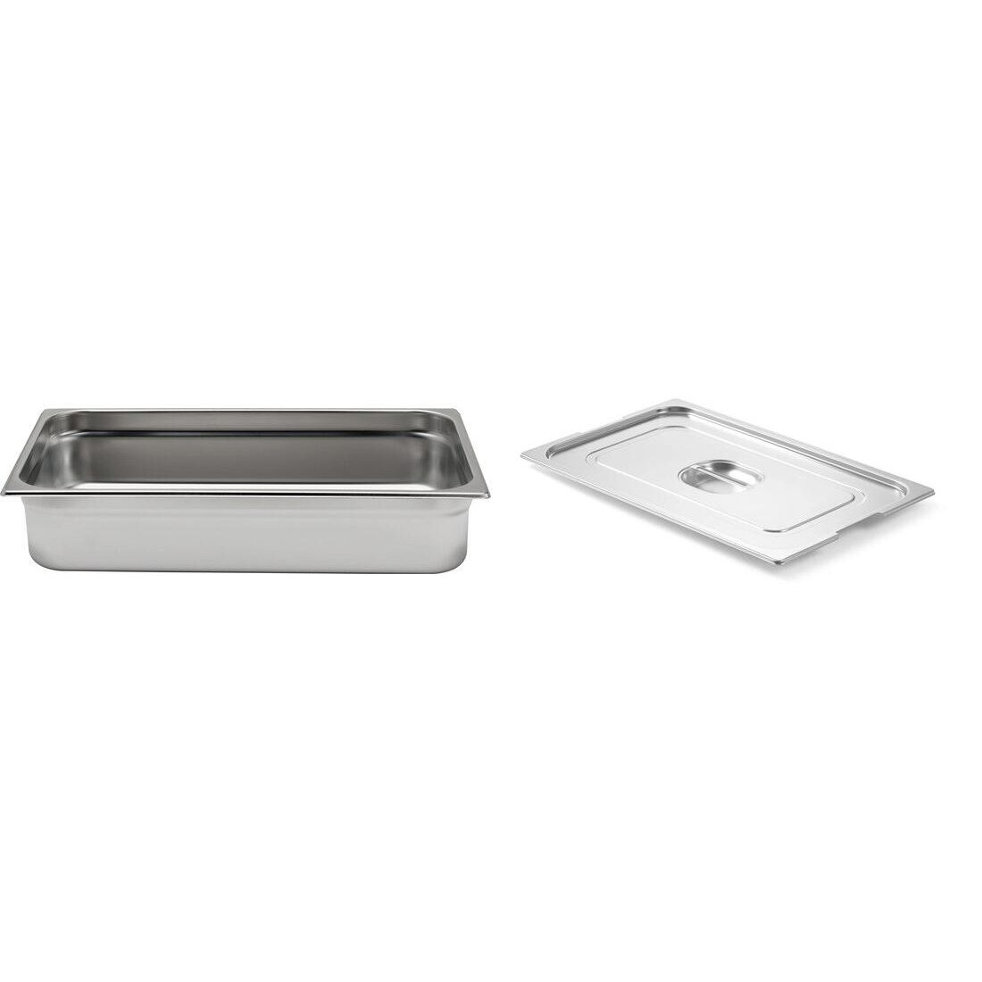 Pachet Tava Hendi Gastronorm GN 1/1 100 mm 13.2 lt - gama Profi Line, otel inoxidabil plus capac cu maner pentru tava gastronom GN 1/1, Profi Line, din inox