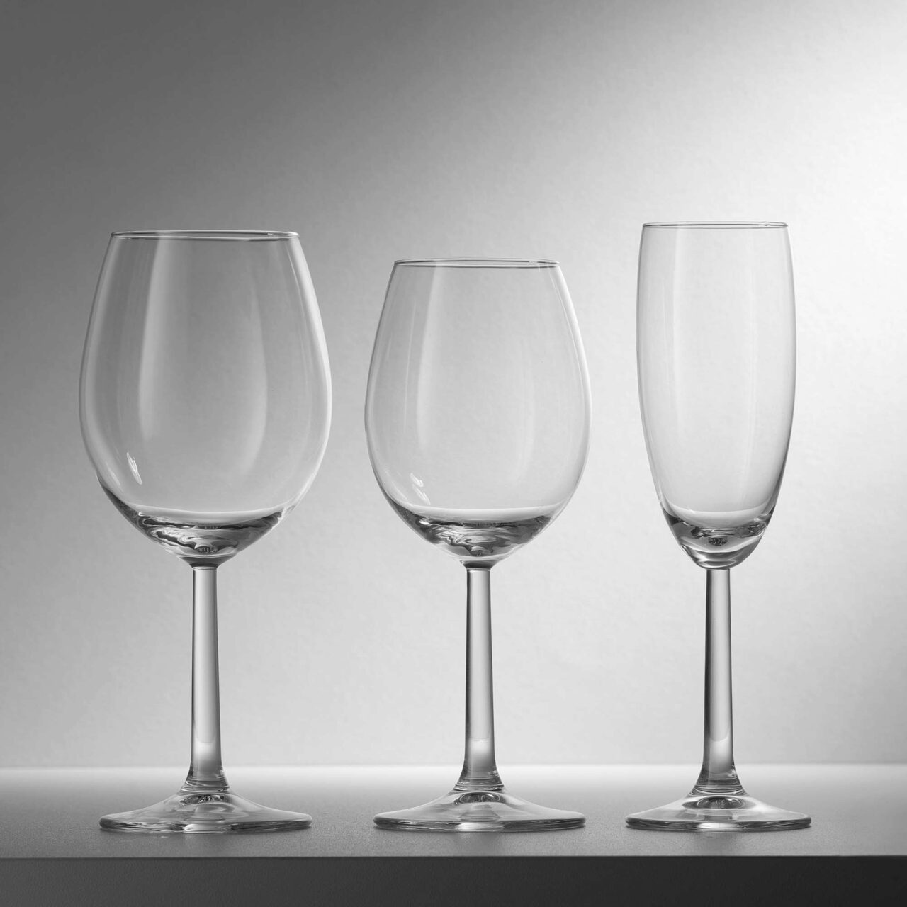 Disponibile în două dimensiuni: 430 ml și 330 ml, și un pahar de șampanie de 180 ml, acestea sunt potrivite pentru a savura toate tipurile de vin.