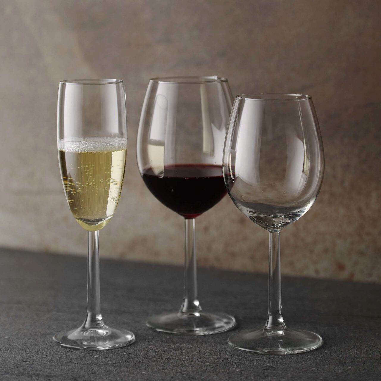 Disponibile în două dimensiuni: 430 ml și 330 ml, și un pahar de șampanie de 180 ml, acestea sunt potrivite pentru a savura toate tipurile de vin.