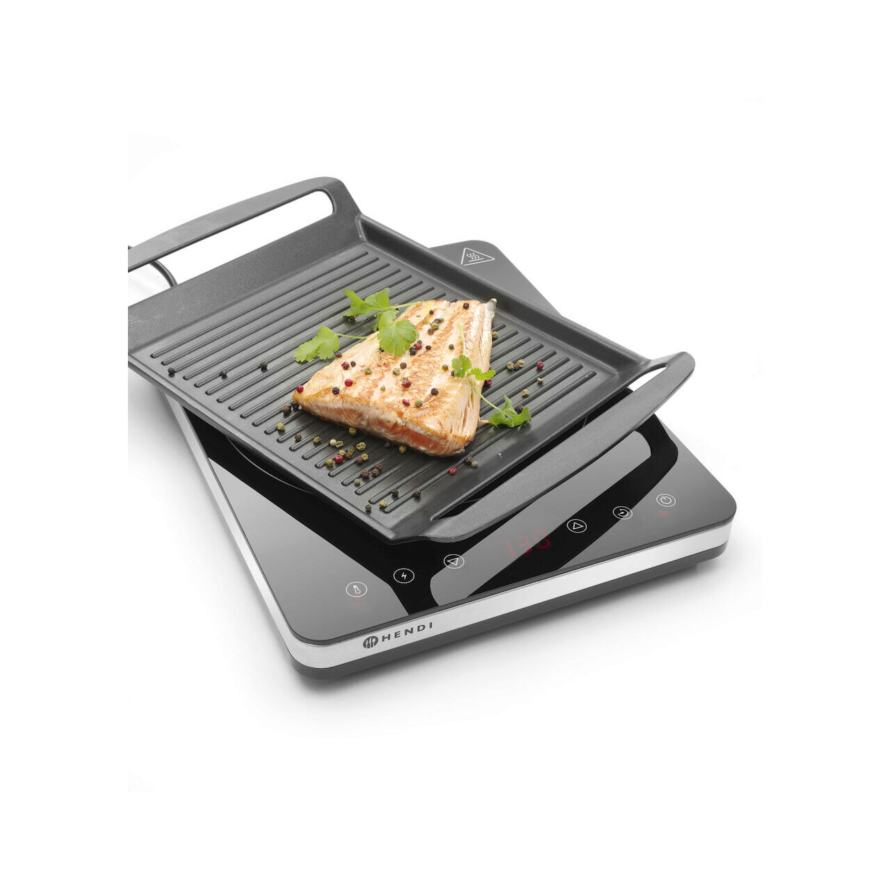 Plita cu inductie profesionala, Hendi, model 2000W, control digital, corp inox, 296x370x(H)46 mm