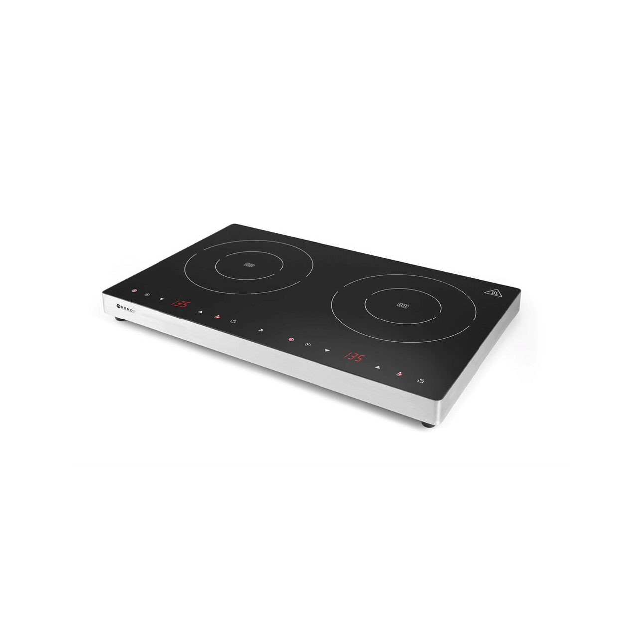 Plita dubla cu inductie profesionala, 3500W, control digital incorporat in suprafata din sticla ceramica, termostat 60-240°C, timer 0-180 min, functie boost, corp inox, Hendi Display Line, 608x370x(H)61 mm
