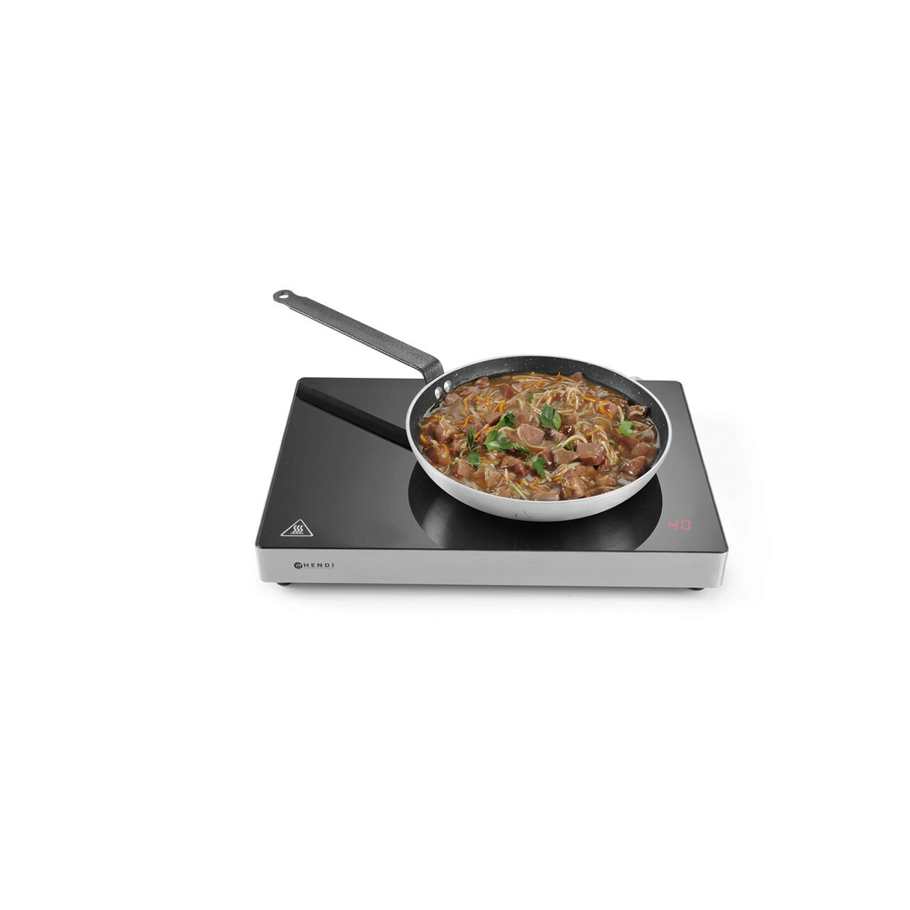 Plita inductie profesionala pentru mentinere la cald, termostat 40-100 gr C, 800W, control digital incorporat in suprafata din sticla ceramica, corp inox, Hendi Display Line, 455x333x(H)62 mm