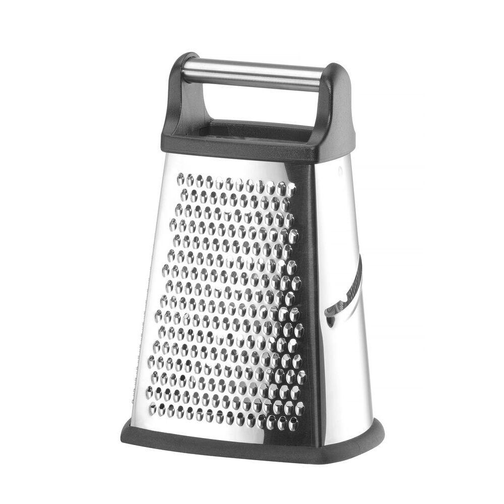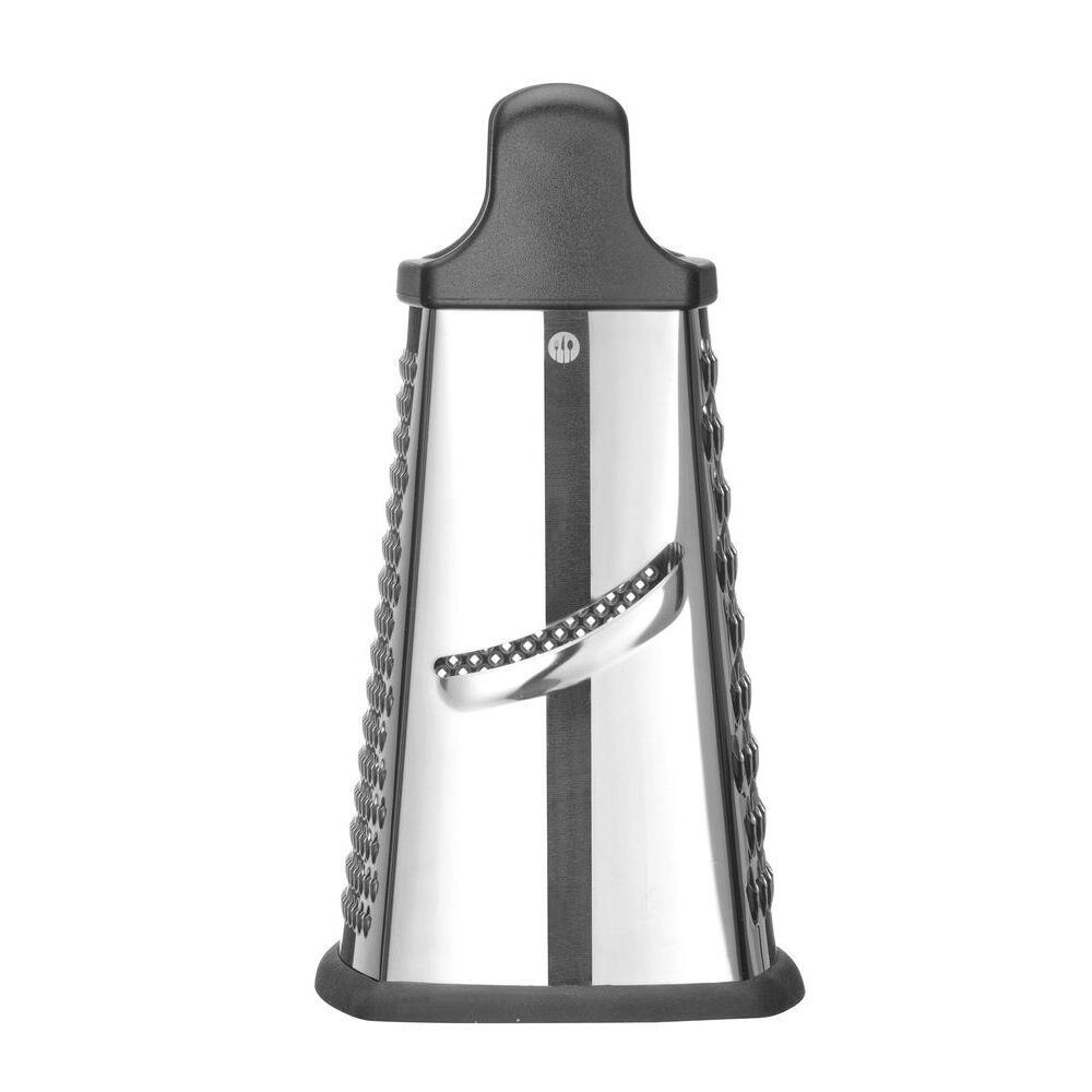Realizata din otel inoxidabil, cu maner ABS si baza anti-alunecare. Receipient de recoltare din PP. 4 laturi diferite pentru razuire: fina, medie, grosiera si feliere. Potrivit pentru masina de spalat vase.