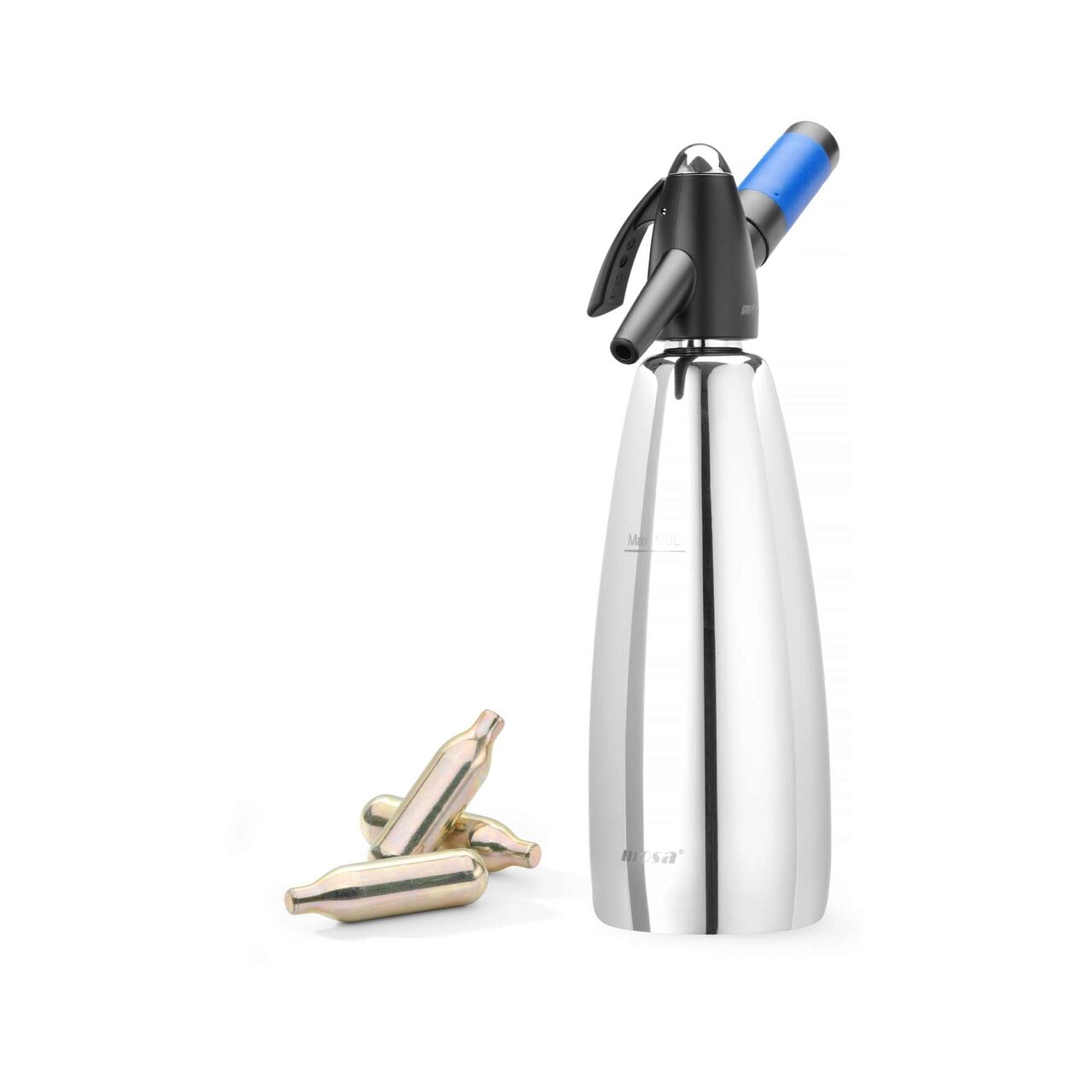 Sifon pentru apa carbogazoasa cu o capacitate de 1 l. Caracteristicile produsului: - Sticla din otel inoxidabil - Pentru prepararea instantanee a apei carbogazoase - A se utiliza numai cu cartușele CO₂