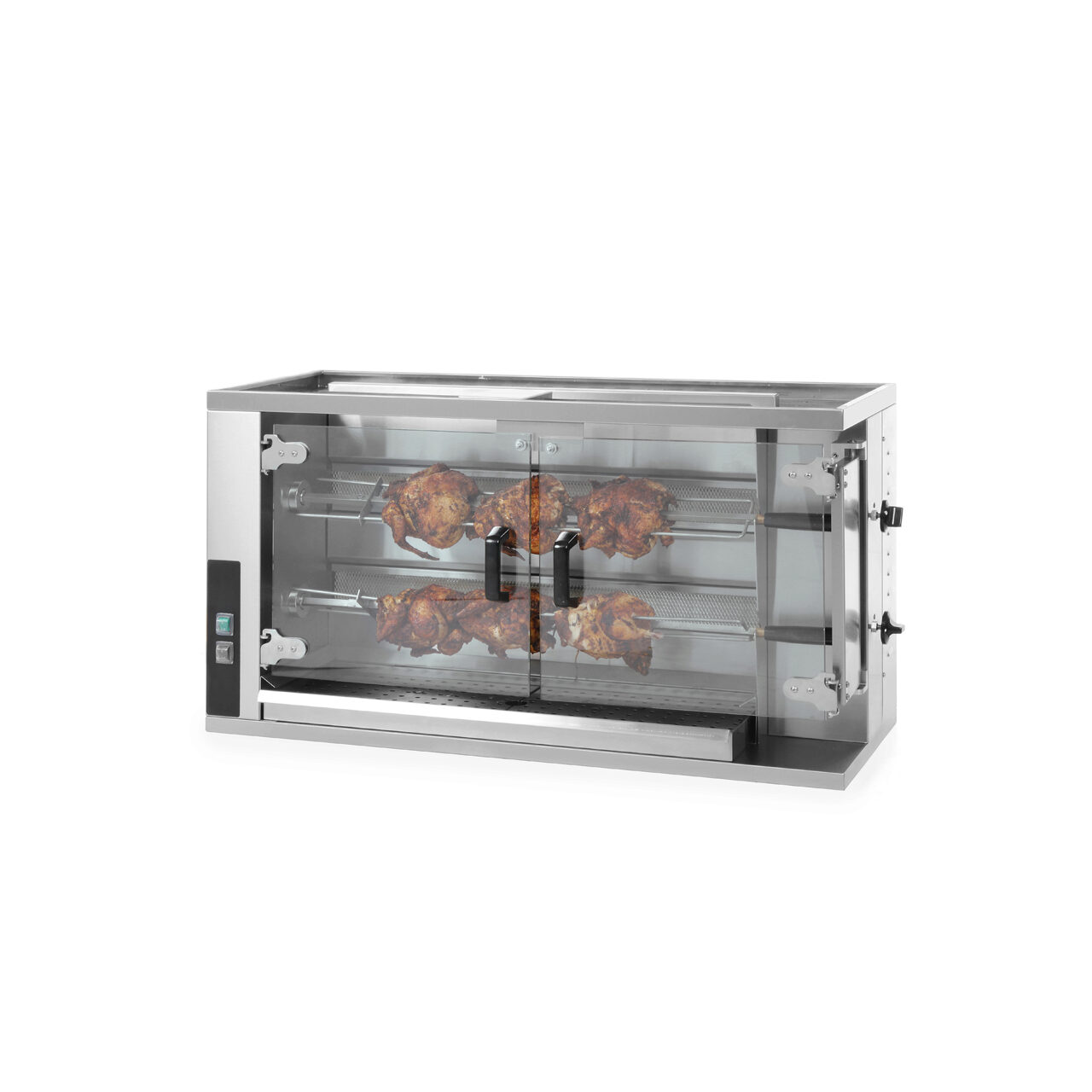 Rotisor gaz profesional pentru 8 - 10 pui 2 viteze de rotatie 1150x472x(H)605 mm Inox Hendi