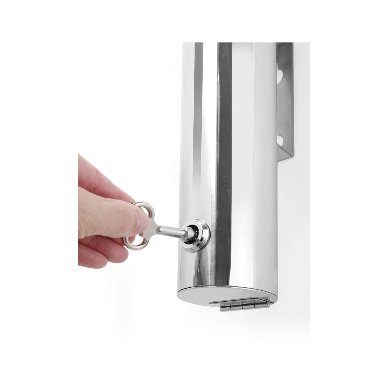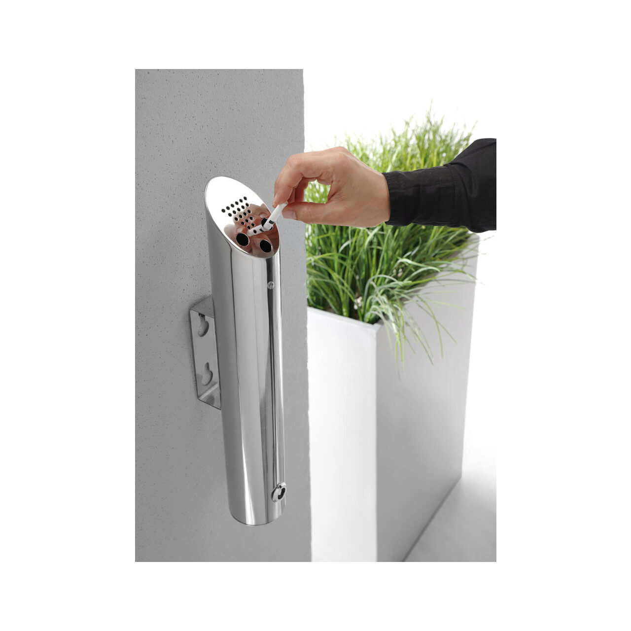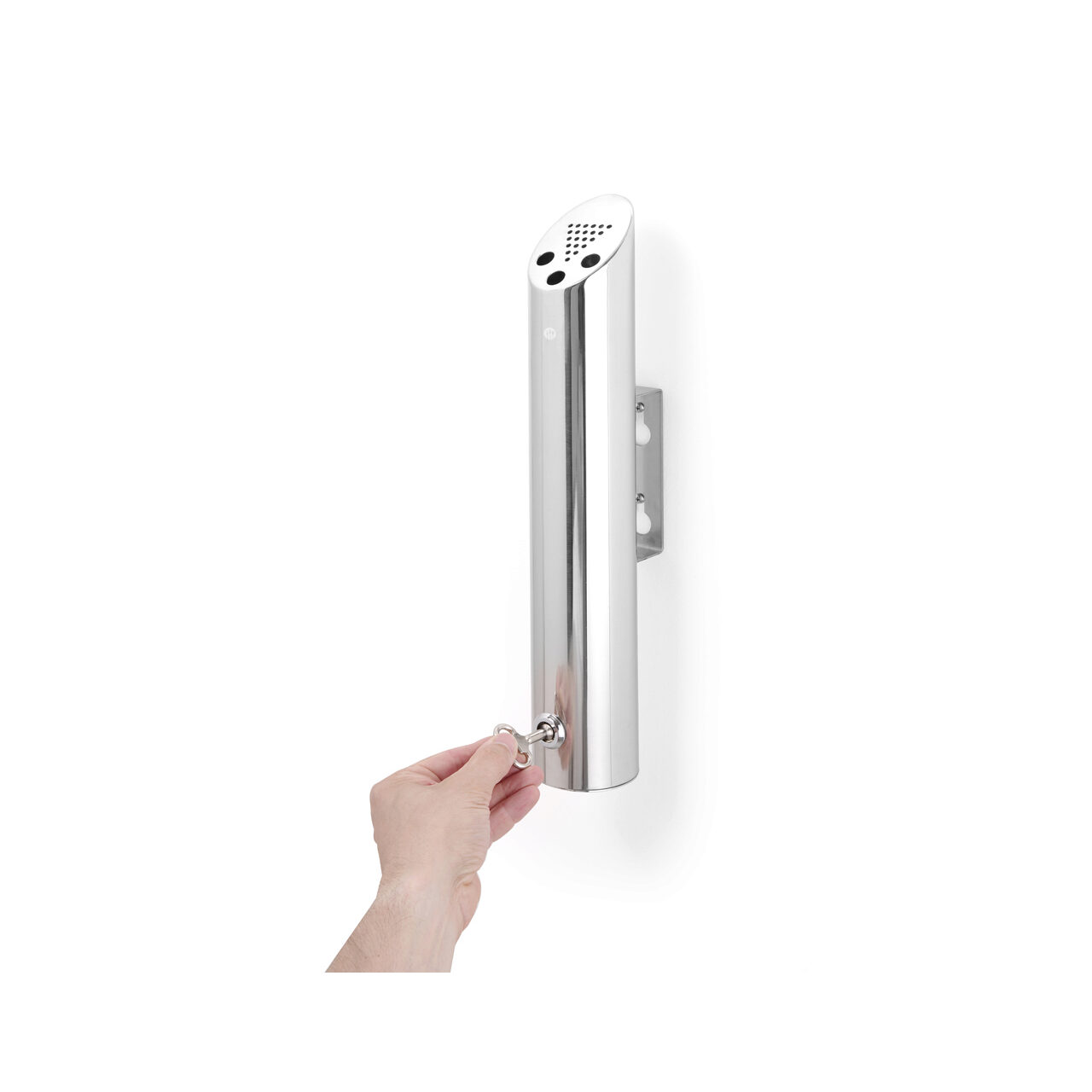 Scrumiera Hendi cu montare pe perete, otel inoxidabil 18/8, ø7.5x(H)46 cm Specificatii: Design robust, usor de montat pe pereti si stalpi Usor de golit datorita fundului care poate fi deschis si inchis cu o cheie Otel inoxidabil 18/8 ø7.5x(H)46 cm
