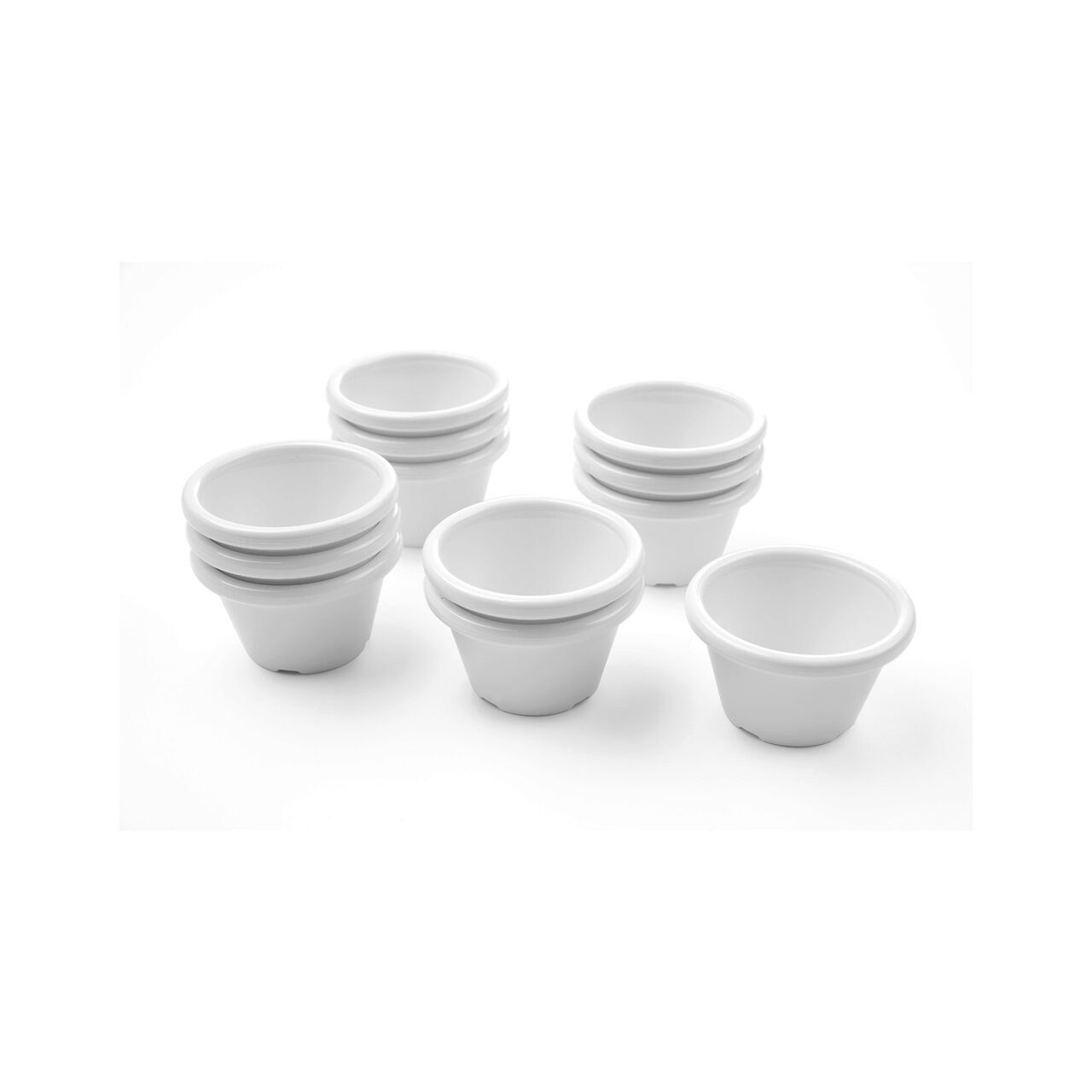 Set 12 bucati ramekine, potrivite pentru contact cu alimente Plastic PET Poate fi stivuit Rezistenta la temperaturi de la -20°C la 95°C Se poate spala la masina de spalat vase